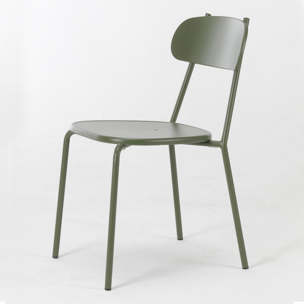 Stackable outdoor chair in powder coated galvanized iron painted and galvanized Made in Italy 4 pieces.