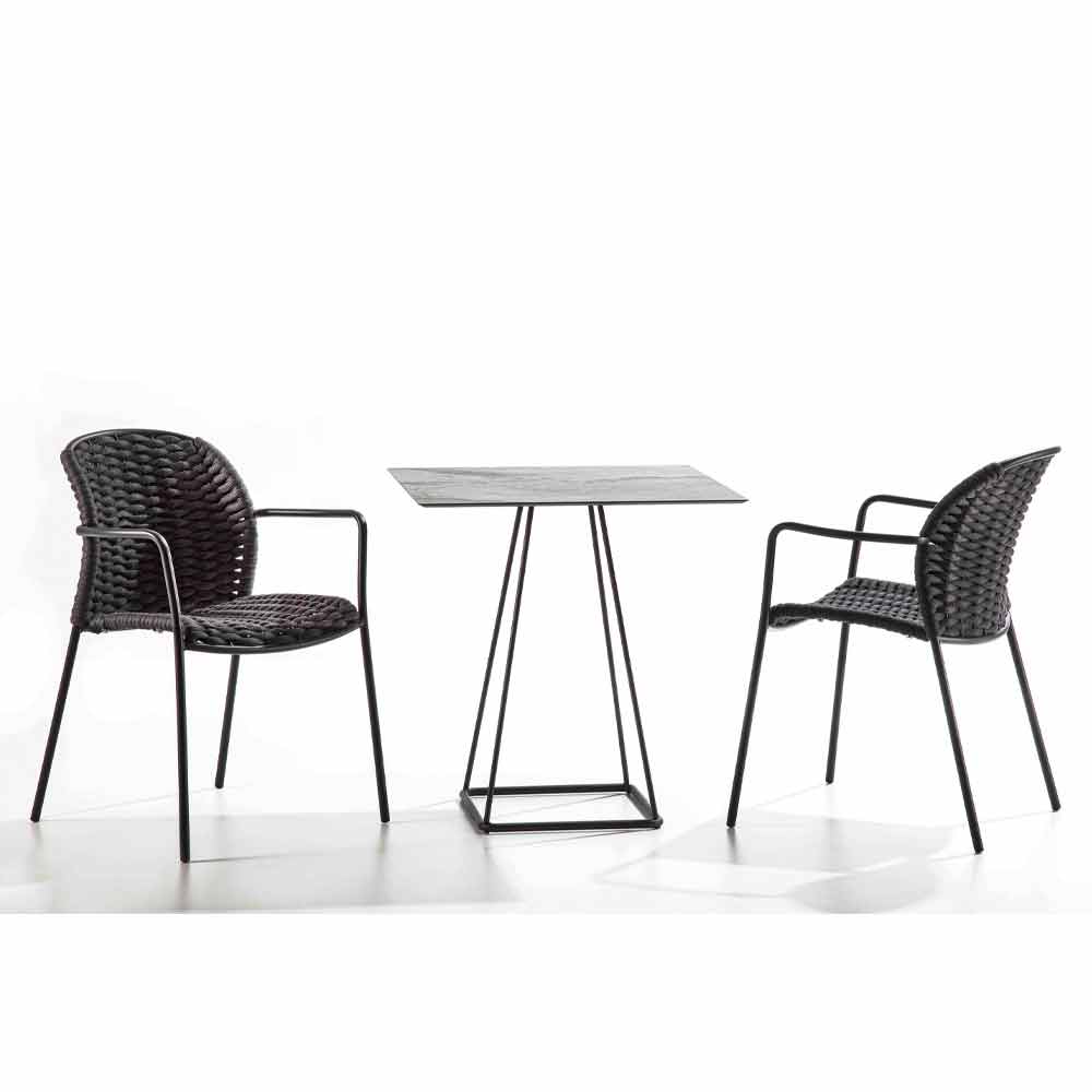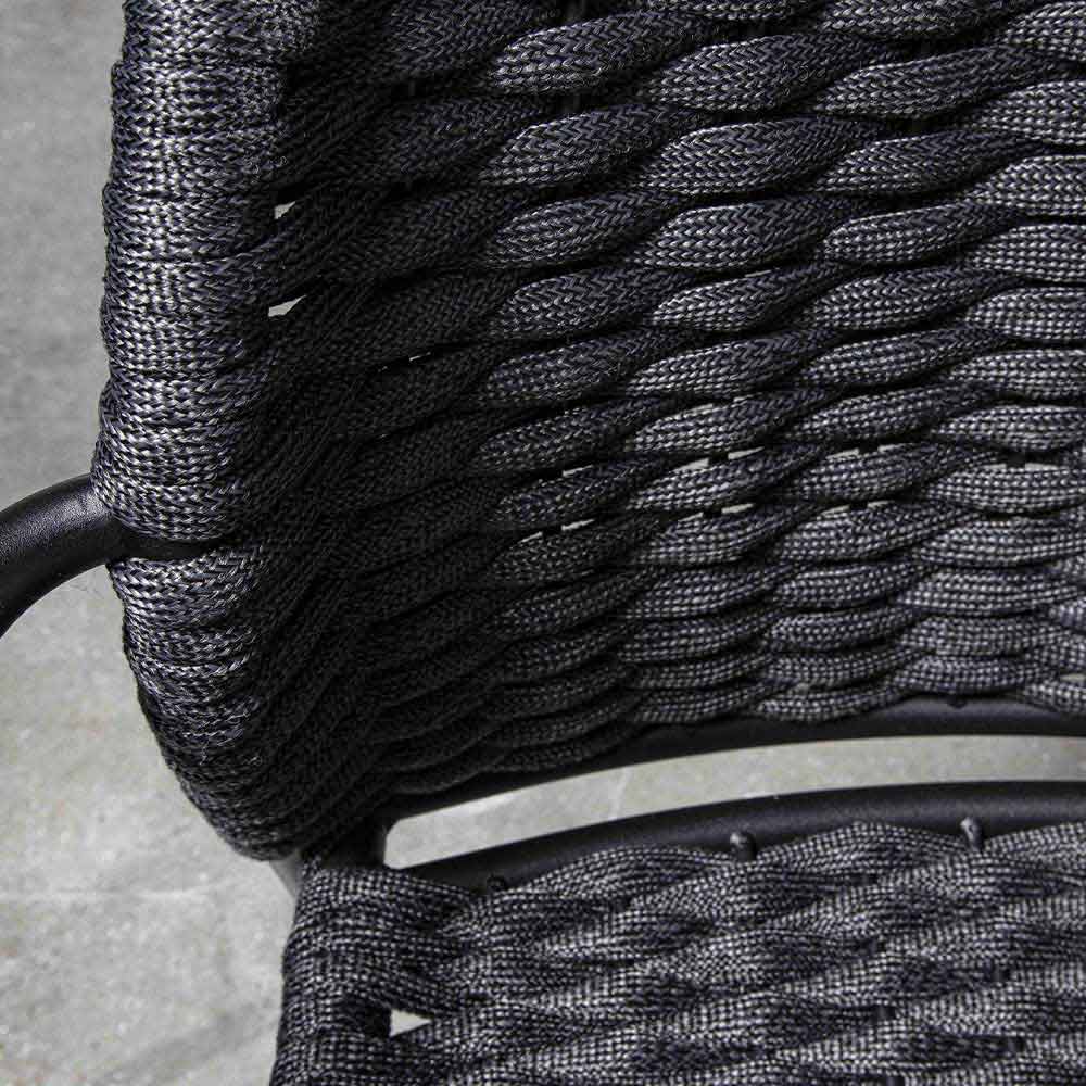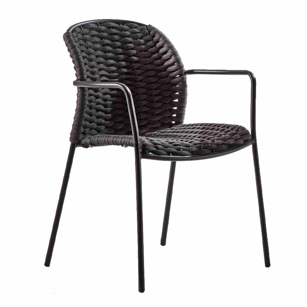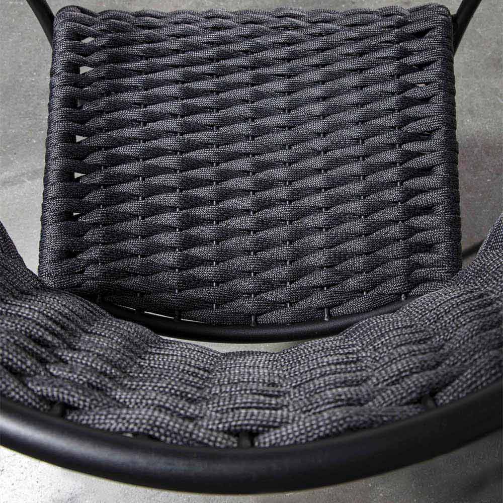 Outdoor chair with stackable structure in galvanized metal anthracite finish equipped with armrests and seat and back in woven polyester rope (inside in rubber) anthracite finish. A furnishing solution that combines optimal comfort and a pleasant aesthetic side that perfectly matches the most varied furnishing styles. In fact, its aesthetics allow it to complete outdoor areas by creating perfect harmony with the other elements present or playing on wonderful style contrasts for an exclusive and avant-garde result .