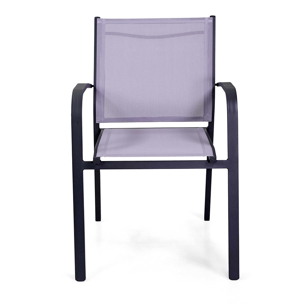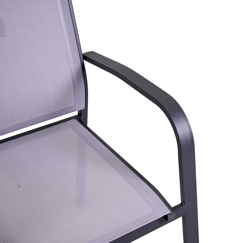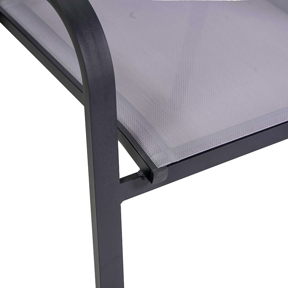 This chair with anthracite powder-coated aluminum frame represents the ideal balance between functionality and style, perfect for outdoor environments such as gardens and terraces. The gray textilene not only gives it a modern and elegant look, but also ensures a comfortable and weather-resistant seat.