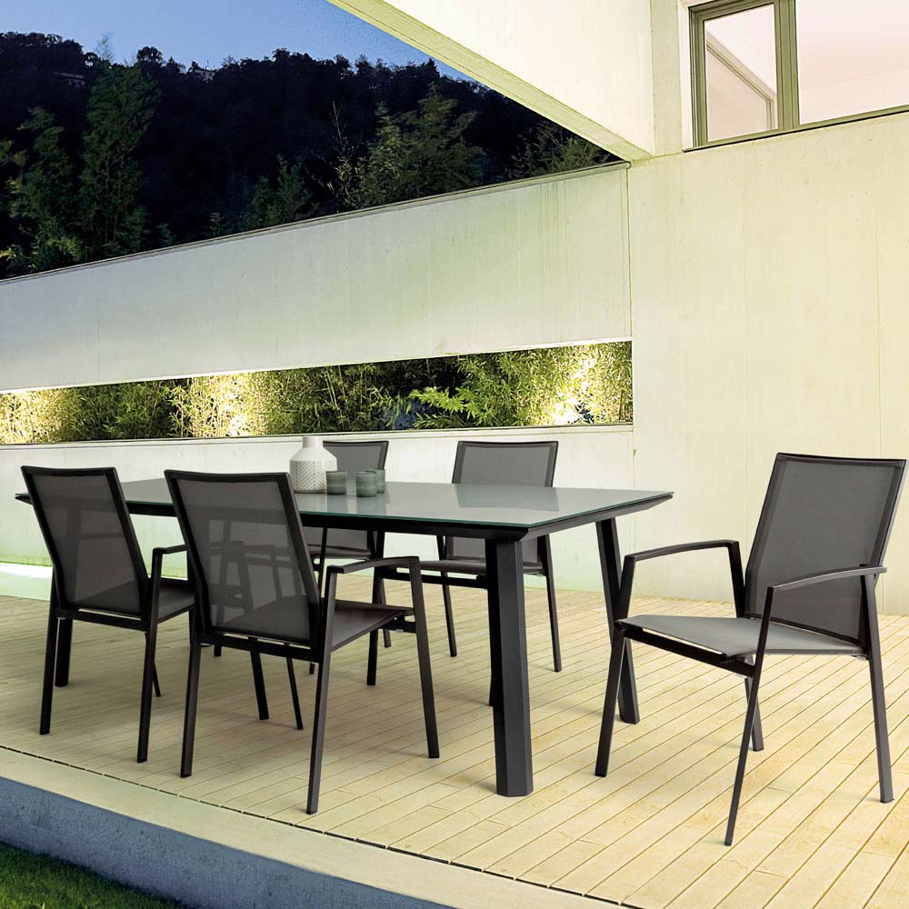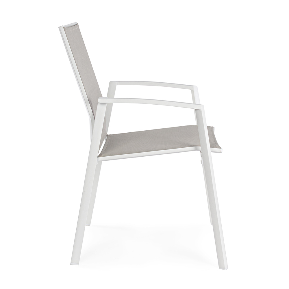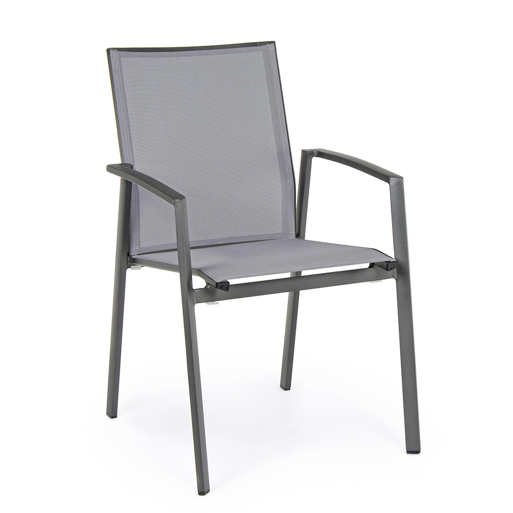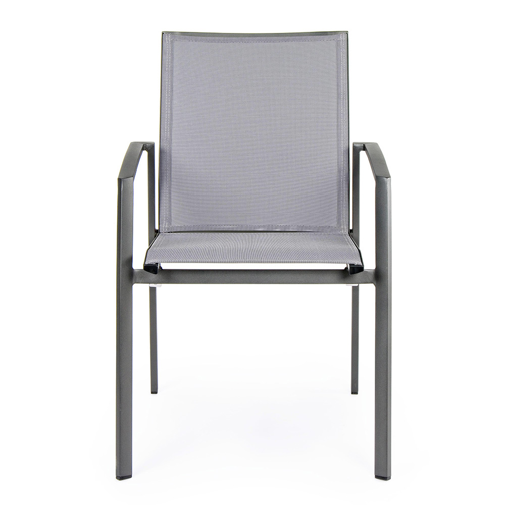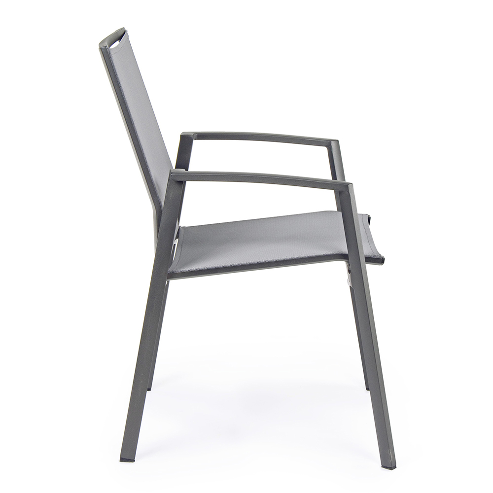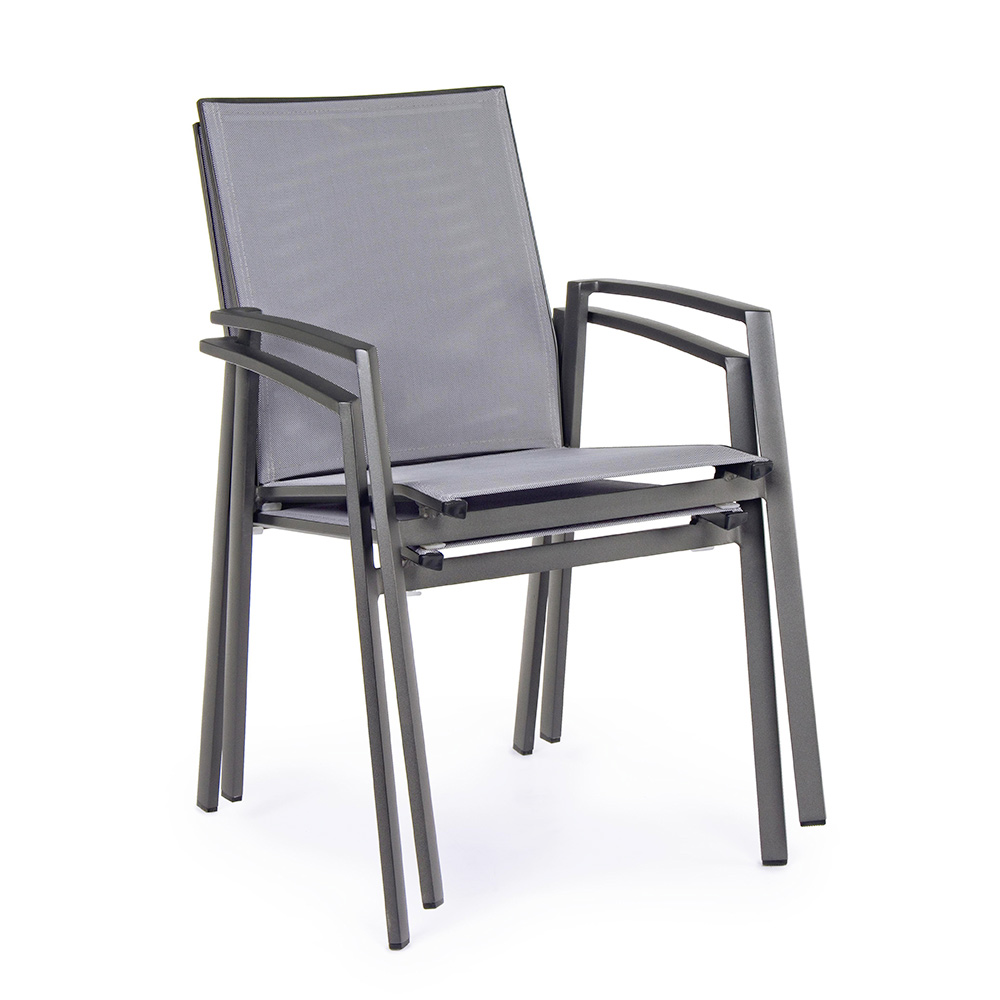 Stackable outdoor chair in aluminum and textilene with armrests, 4 pieces.
