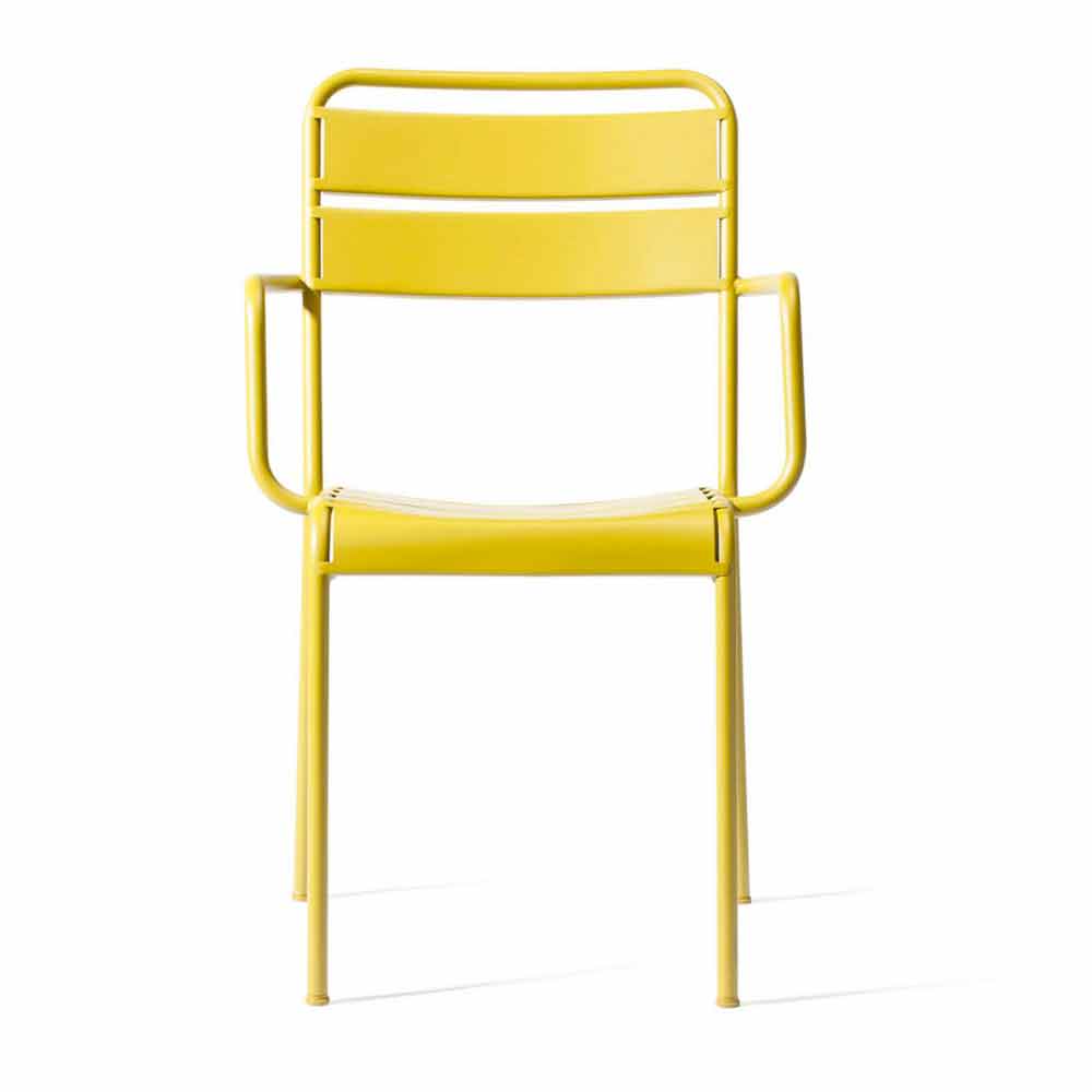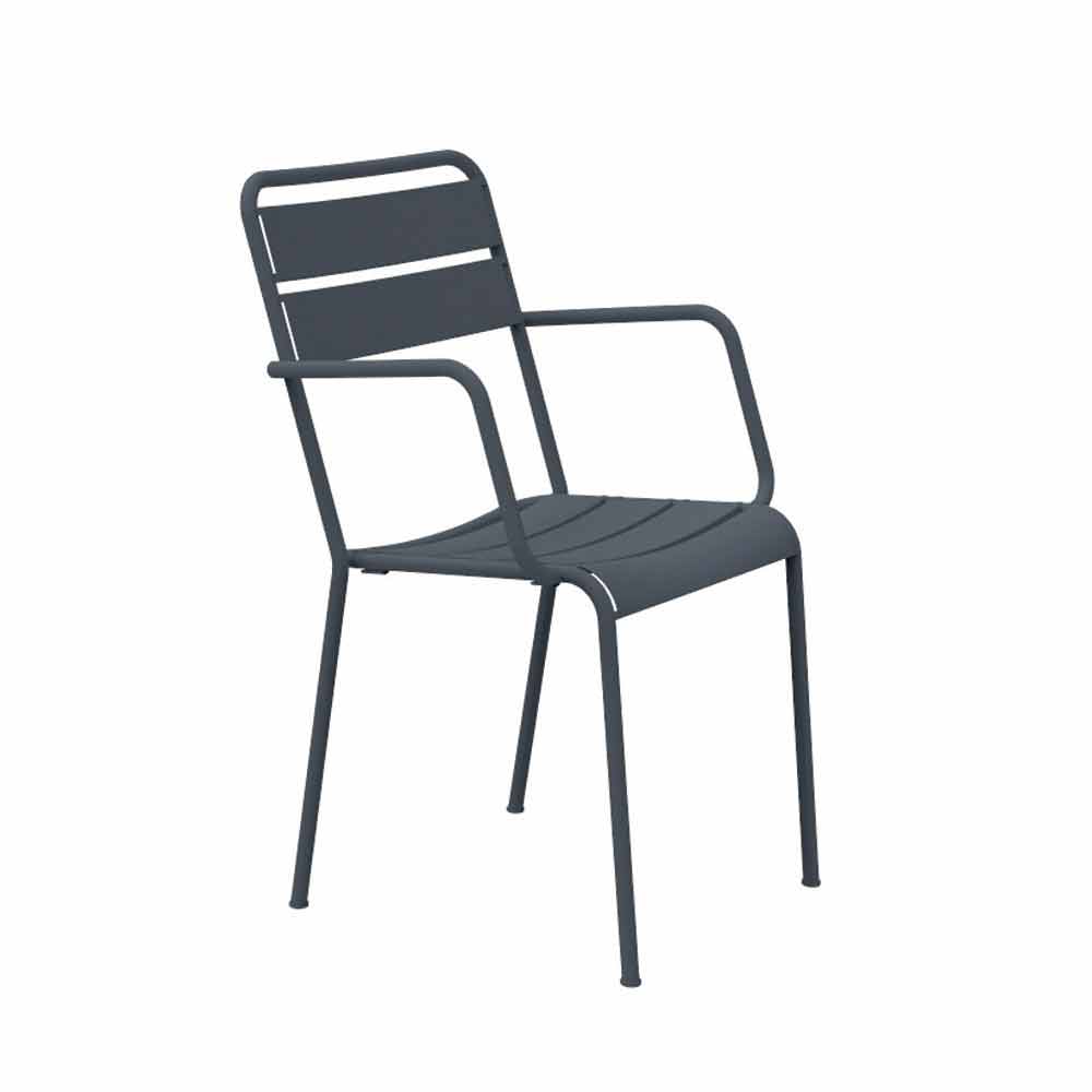 Stackable outdoor chair with or without armrests in powder-coated galvanized iron Made in Italy, 4 pieces.