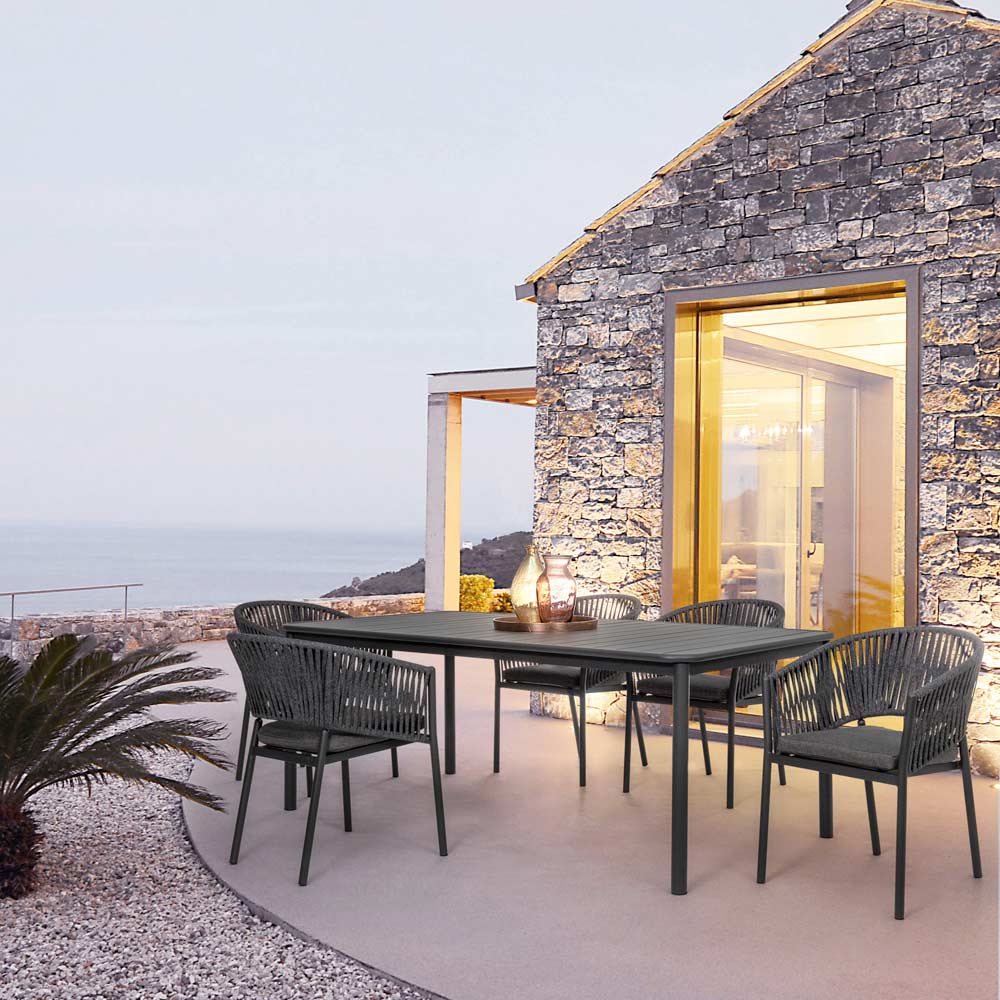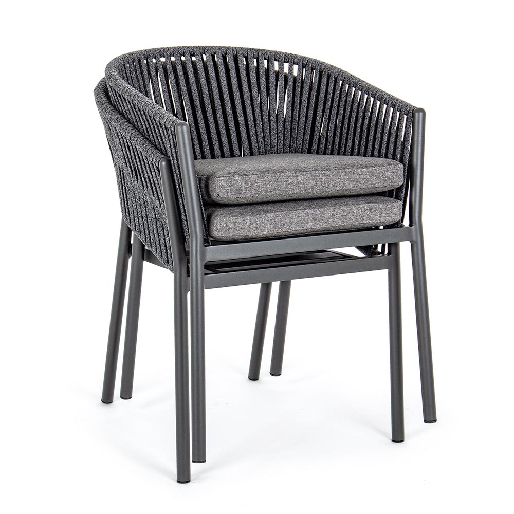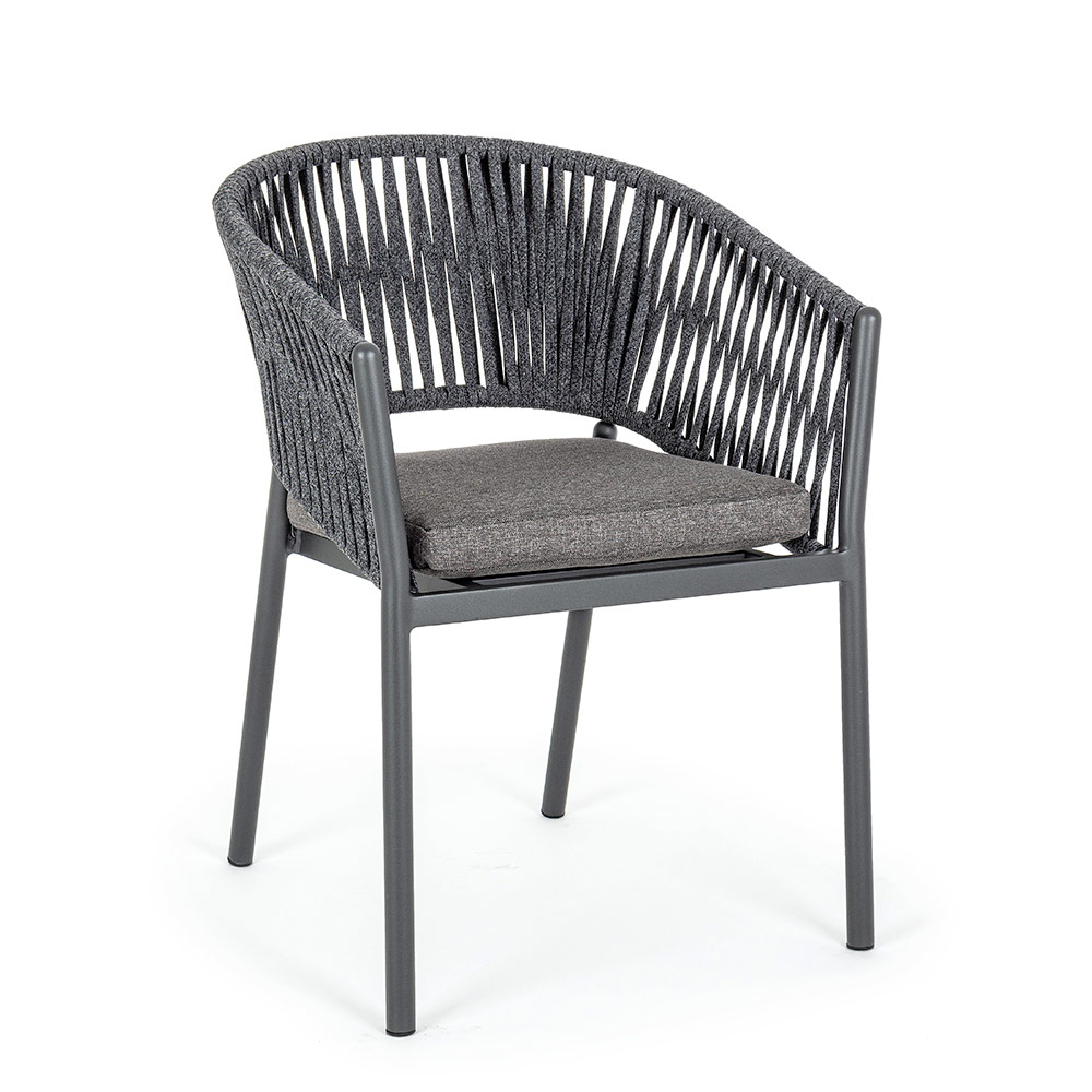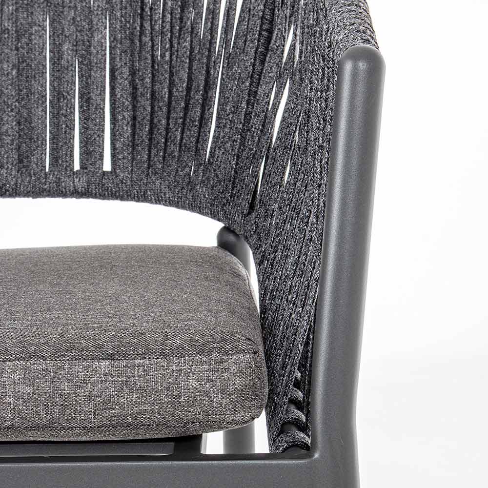 Stackable outdoor chair in aluminum, rope and 4-piece removable fabric, high quality.