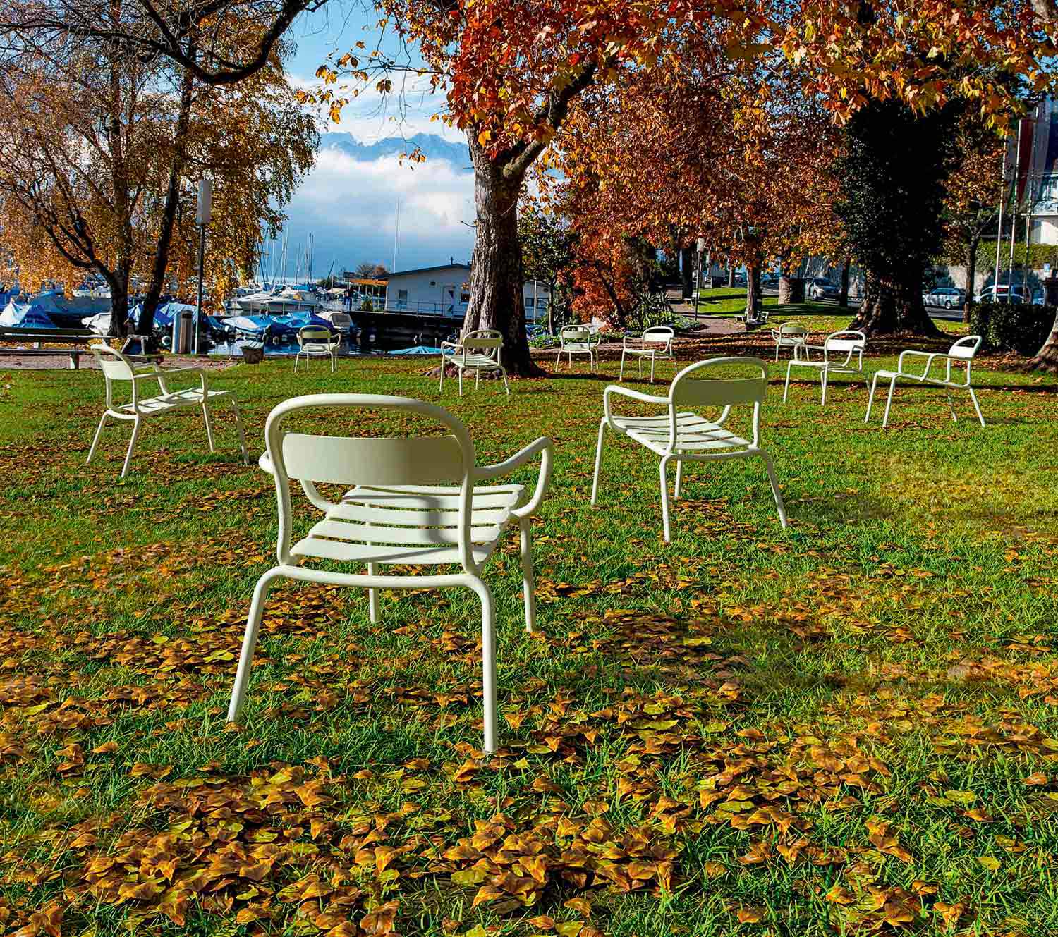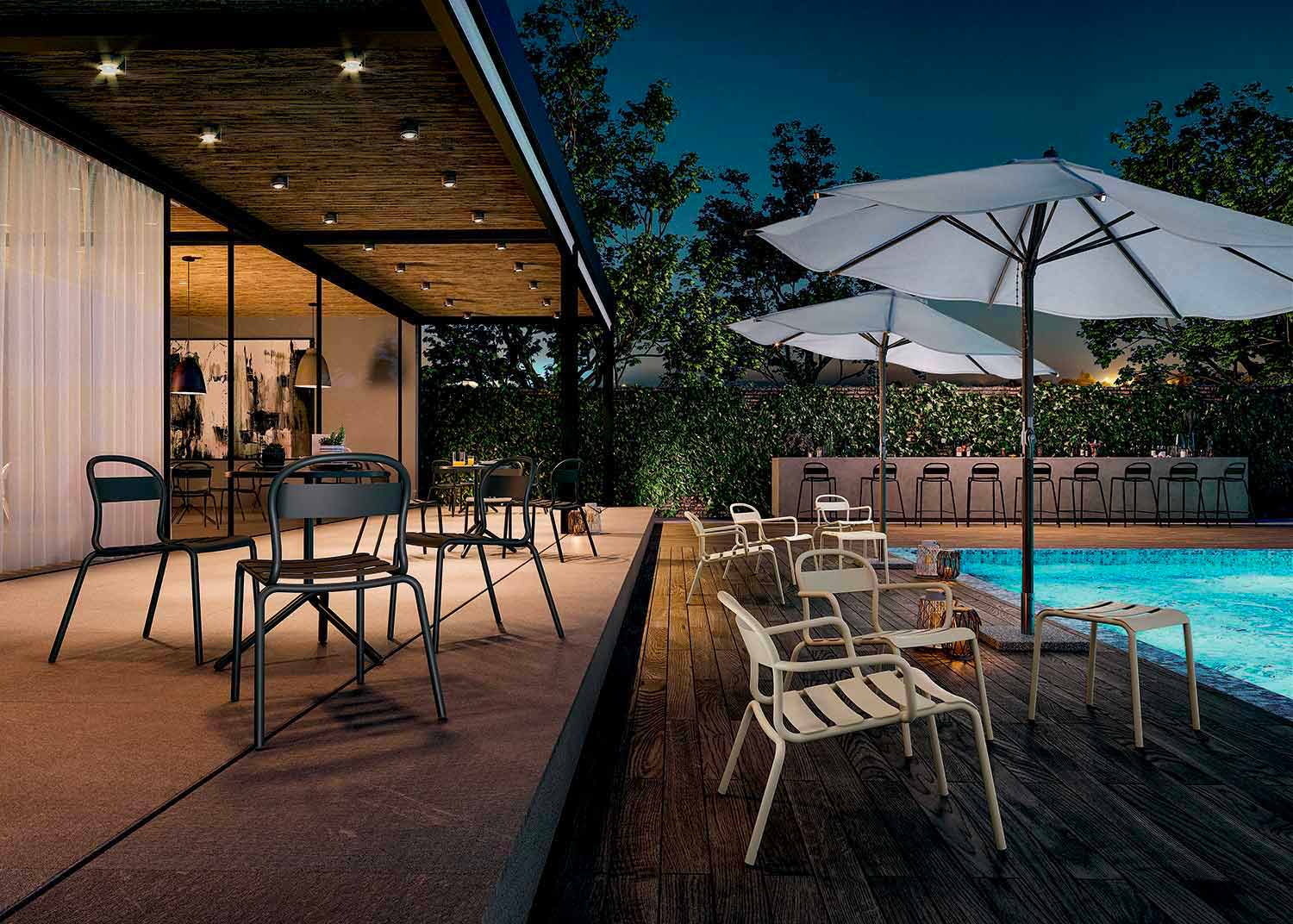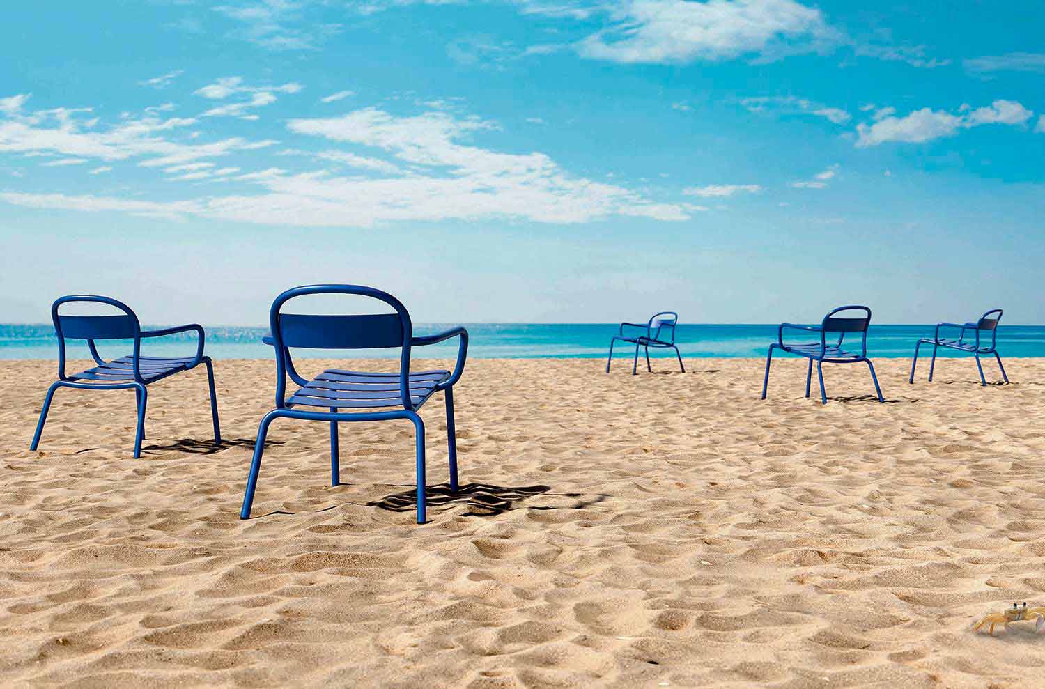 The design of this chaise longue makes it easily imaginable in a garden or terrace, but does not exclude its use even in indoor situations in domestic and non-domestic environments. Made entirely of painted aluminum , thanks to the 8 available colors, it adapts perfectly to any furnishing situation, from the most modern to the most traditional, helping to give color and personality to the room.