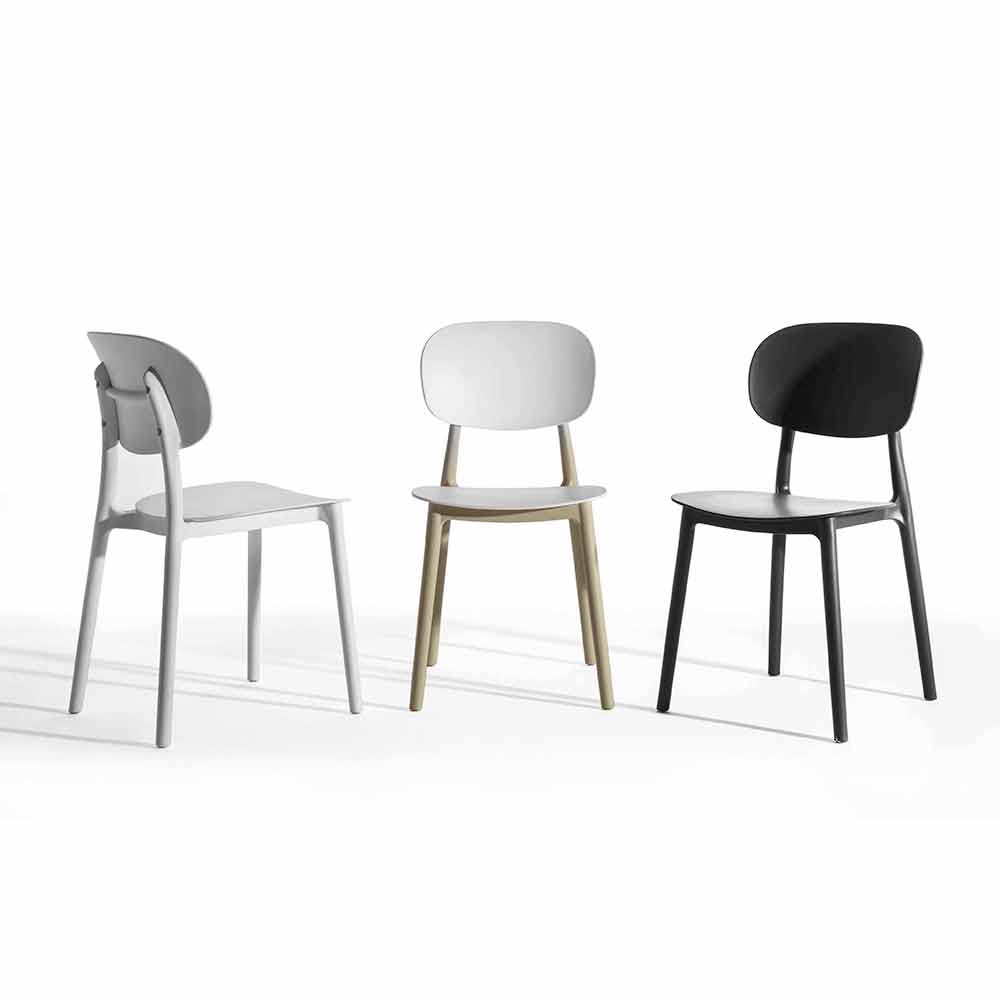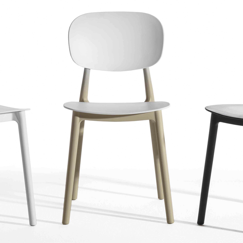 comfort . Its structure in fact ensures a comfortable and welcoming seat despite the simplicity of its design and also allows you to stack the chairs up to a maximum of 2 units, thus allowing you to optimize spaces when necessary. Moreover, the neutral colors that are proposed reflect the