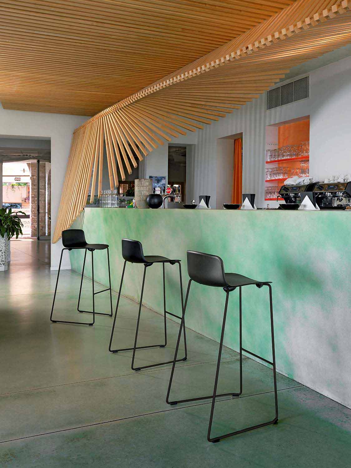 The Charla outdoor stool is characterized by a minimal and modern design that adapts perfectly to any style of furniture thanks to the versatility of the polypropylene shell available in 7 different colors.