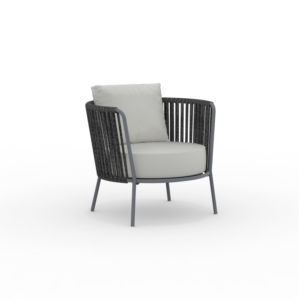 The stainless steel structure guarantees solidity and resistance to atmospheric agents, while the rope weave gives a touch of lightness and refinement, enveloping the seat in a comfortable embrace. The ergonomic design and rounded lines ensure a pleasant and relaxing seating experience.