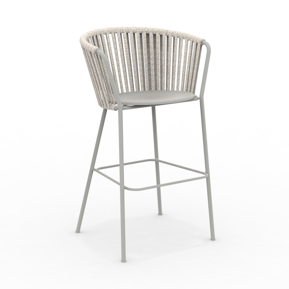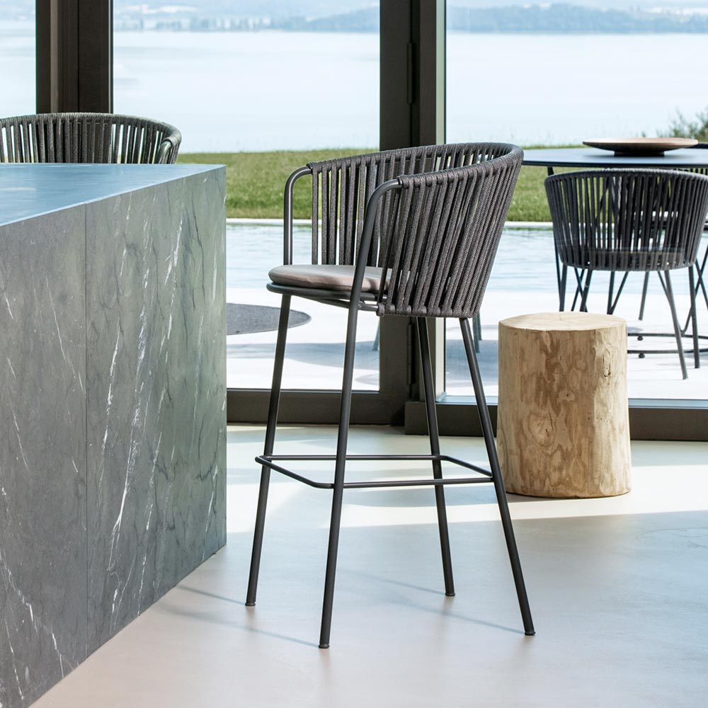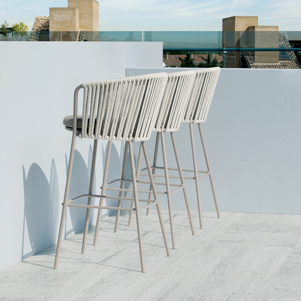 The stainless steel structure guarantees solidity and resistance to atmospheric agents, while the rope weave gives a touch of lightness and refinement, enveloping the seat in a comfortable embrace. The ergonomic design and rounded lines ensure a pleasant and relaxing seating experience.
