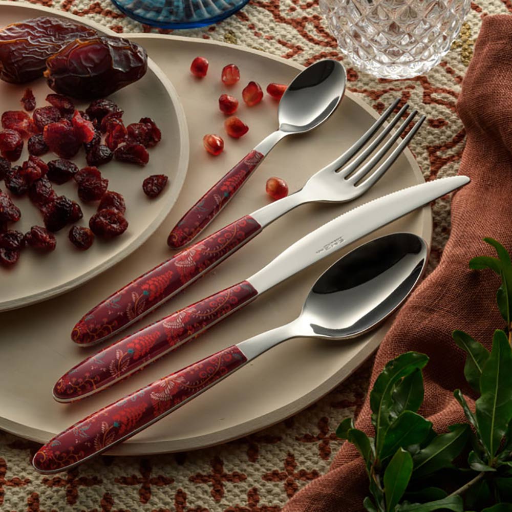 Steel and Plastic Cutlery Colored Arabesque Decor 24 Pcs - Alessandra