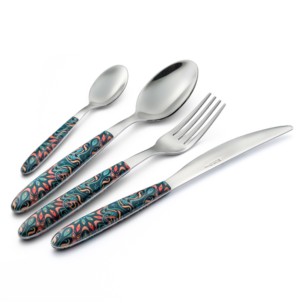 Steel and Plastic Cutlery Colored Floral Decor 24 Pcs - Alessandra