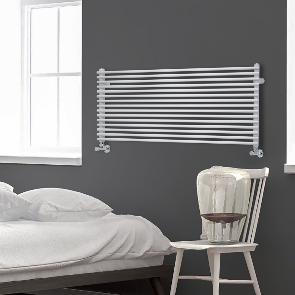 Hydraulic radiator in carbon steel with BITS finish consisting of a series of horizontal elements with a diameter of 1.6 cm welded onto vertical manifolds with a diameter of 3.5 cm, entirely made in Italy with wall fixing kit, vent valve and blind plug included .