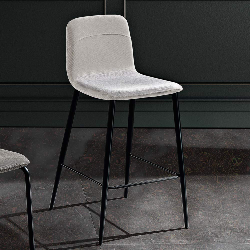 Kitchen stool with seat covered in fabric and metal frame with round tube (diameter 16 mm) in matt anthracite finish RAL 7021 complete with practical footrest,   made in Italy.