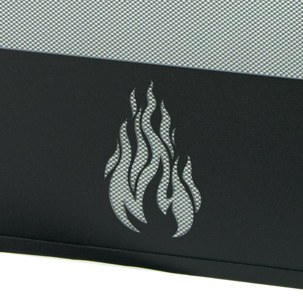 The sturdy and durable metal structure is embellished with a finish that combines with sober elegance with any type of furniture, from classic to contemporary. The design is clean and modern, with clear lines that give a refined and minimalist look, while the decorative stylized flame motif at the bottom adds a touch of unique and distinctive character.