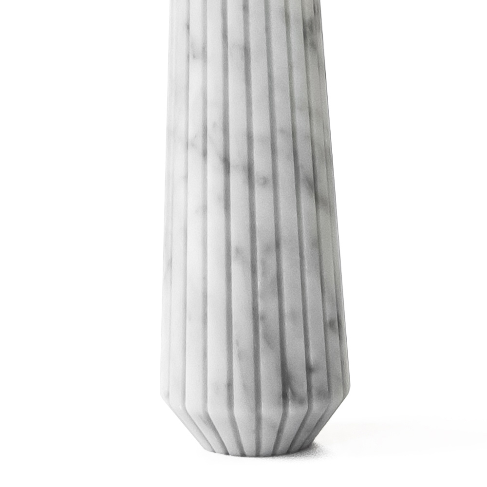 Large striped candle holder in white Carrara marble and brass, made in Italy.