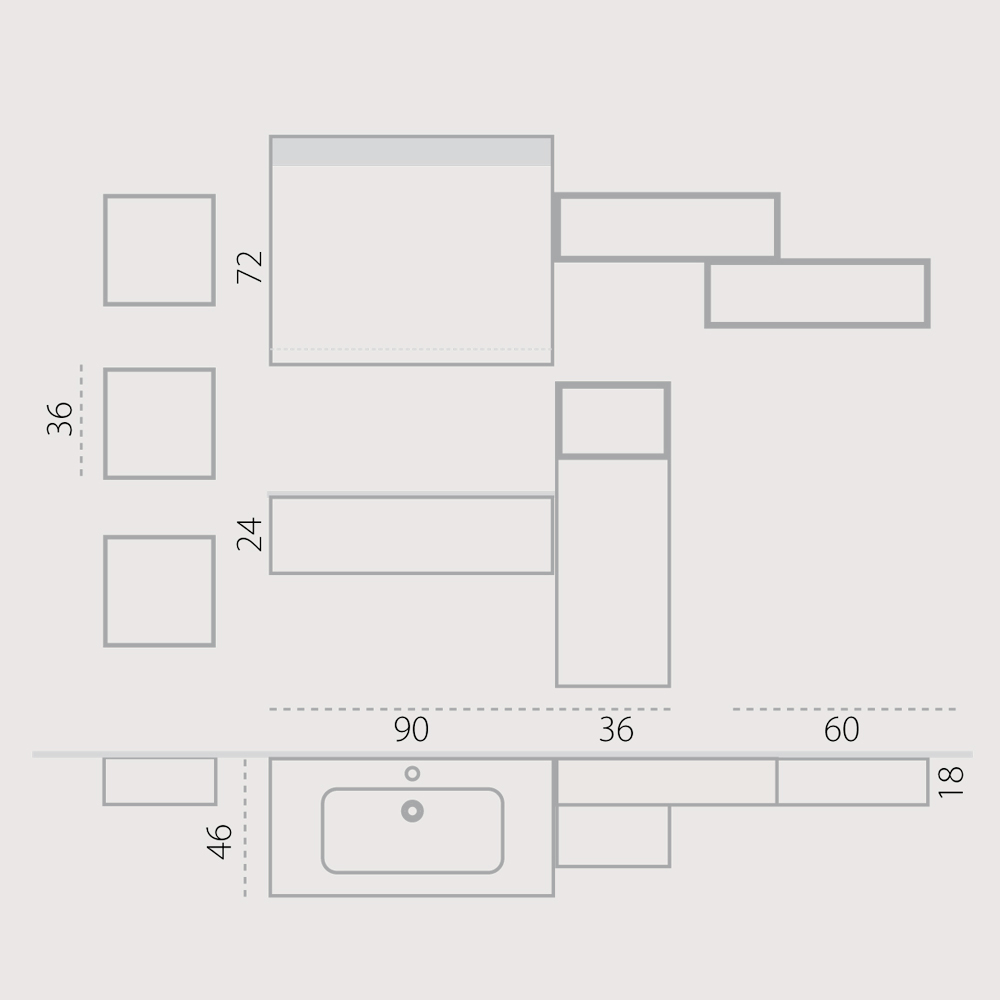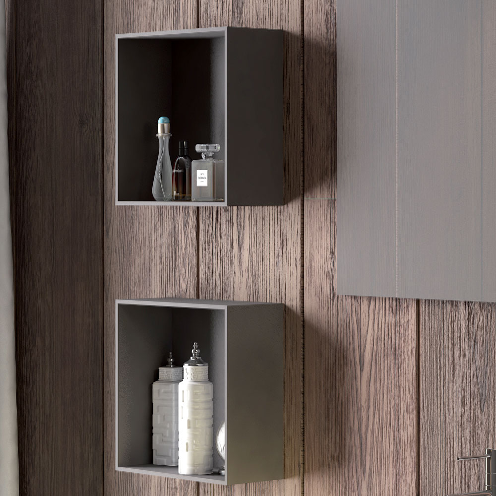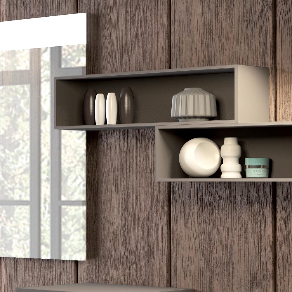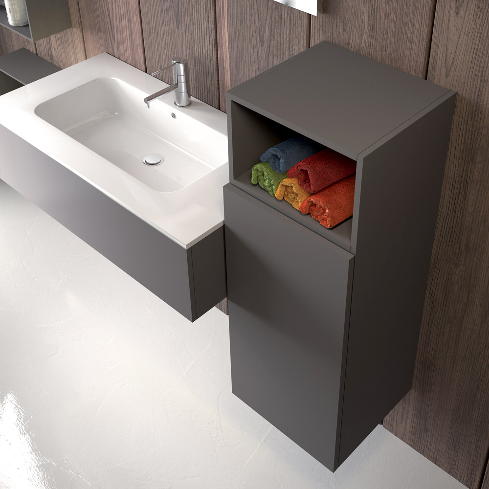 Napoli is a set of suspended bathroom furniture made with different materials and finishes and with the possibility of countless combinations thanks to the different elements, for a result of flexible geometries for a bathroom outside the common patterns.