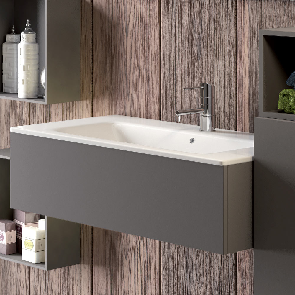 - A washbasin base in smoky gray Fenix; L90xH24xD46 cm;