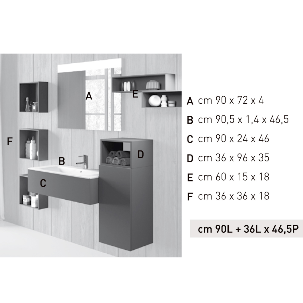 - A lateral base in smoky gray Fenix; L36xH96xD35 cm;