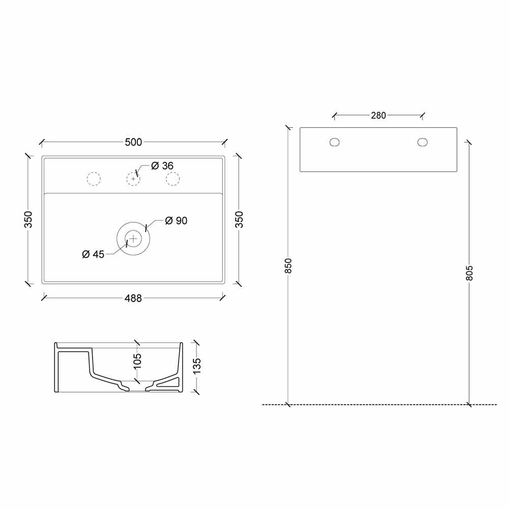 Sun suspended ceramic washbasin 50x35 cm, different colors available