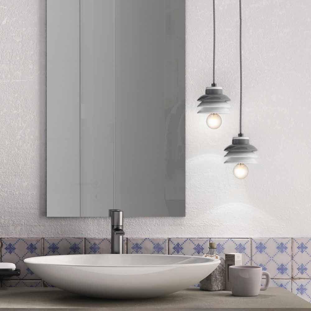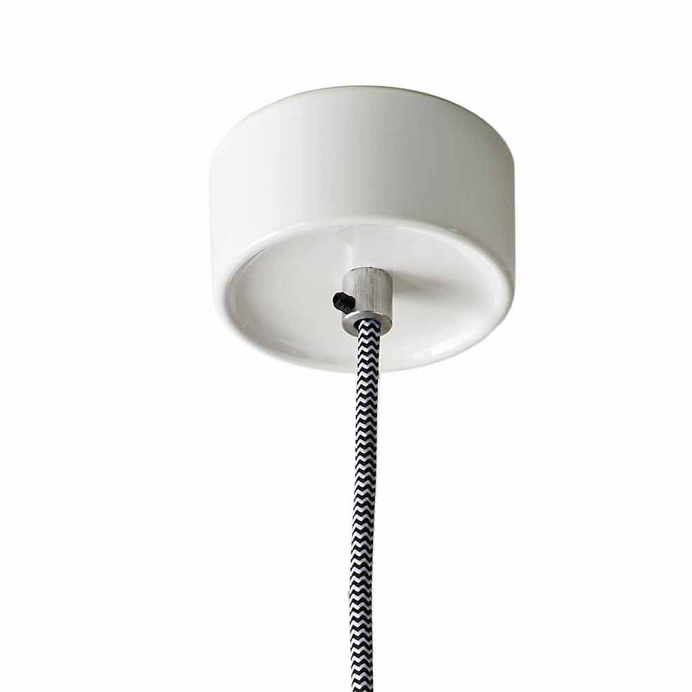 Made in Italy by master craftsmen in white and gray ceramic, with black and white cloth cable and the aluminum cable clamp.