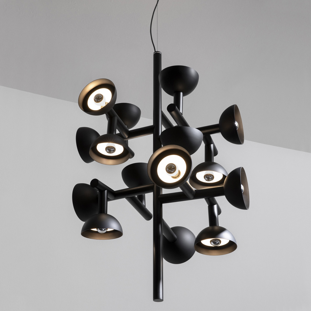 Suspension Lamp 16 Lights Design in White or Black -Celio Aluminum