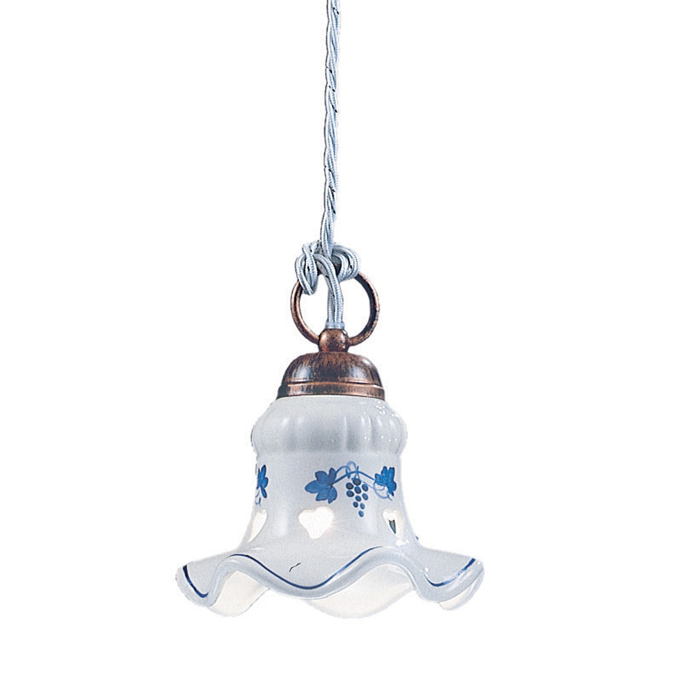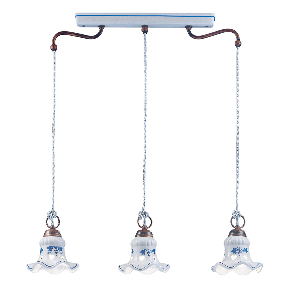 Pendant lamp with 3 lights in iron and hand-decorated ceramic, made in Italy by Ferroluce.