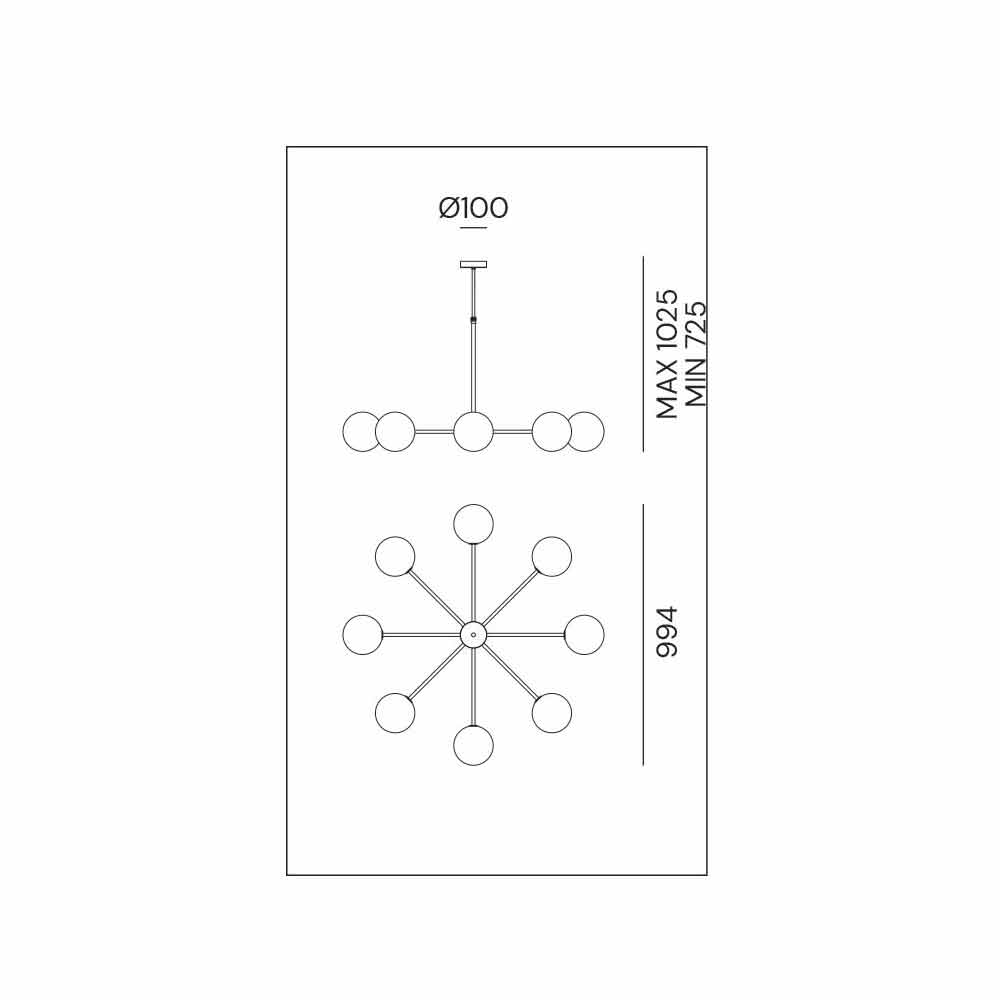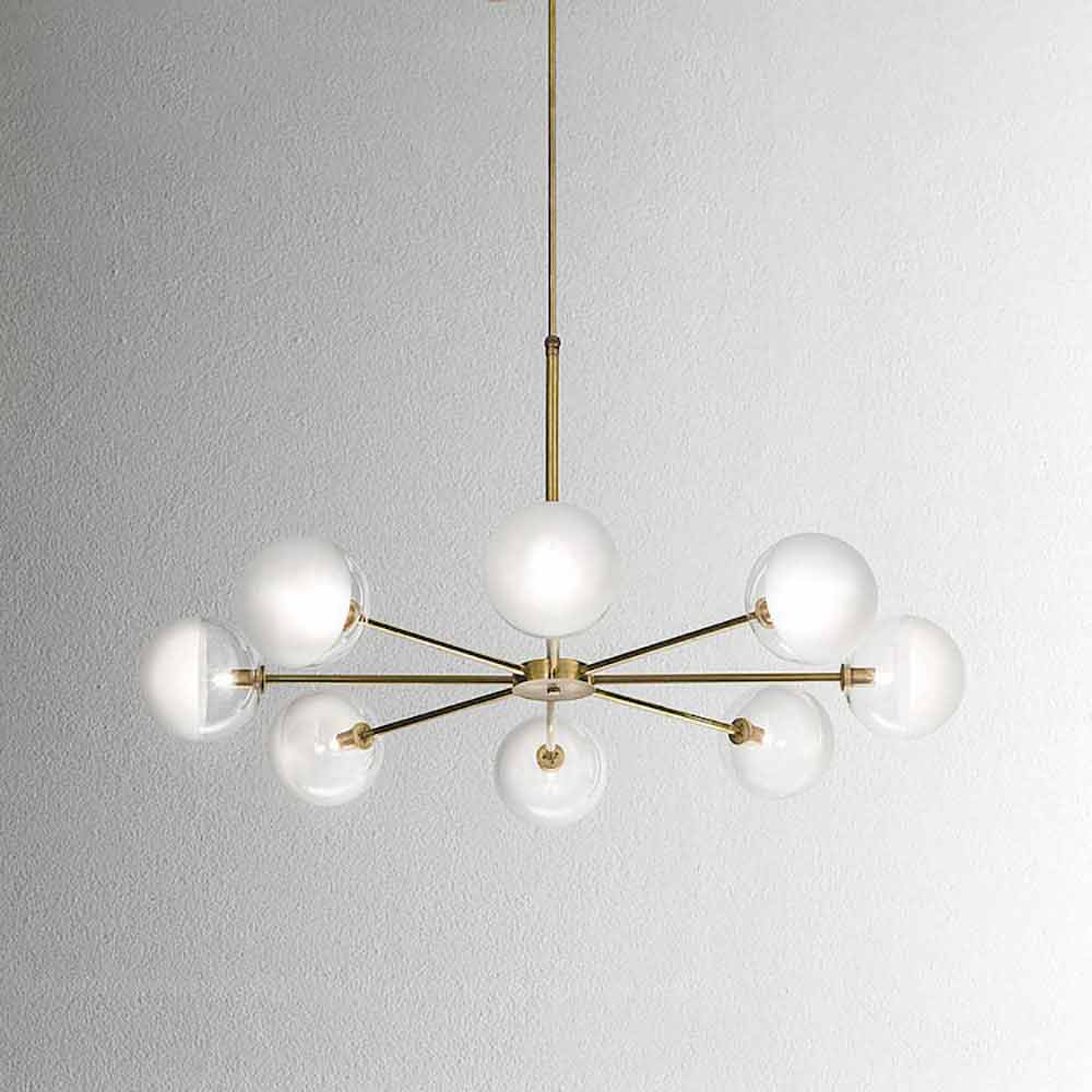 glass spheres. On request also available in the version in antique brass or black painted and copper-plated glass spheres.