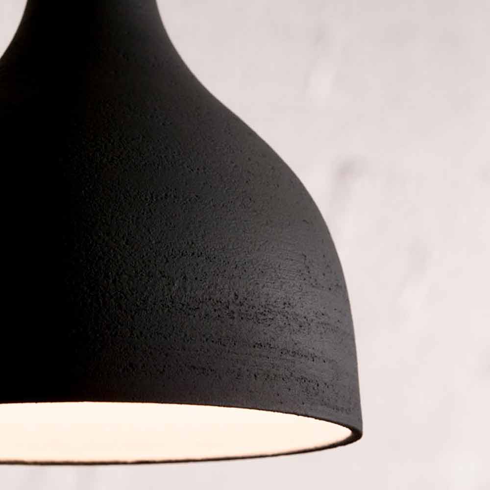 The lamp is made of matt anthracite stoneware, a compositional continuity material that differs from ceramic for greater resistance to atmospheric agents, fire and thermal shocks. White enamelled interior.