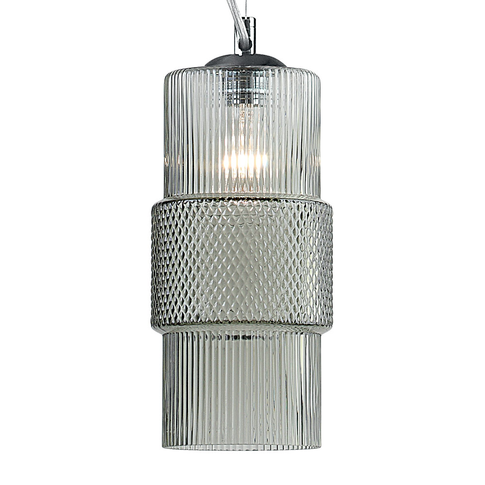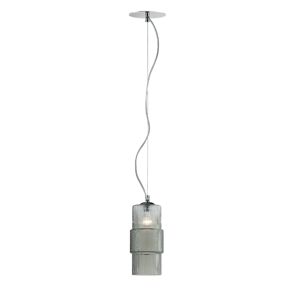 Handcrafted suspension lamp in blown Venetian glass and chromed metal.