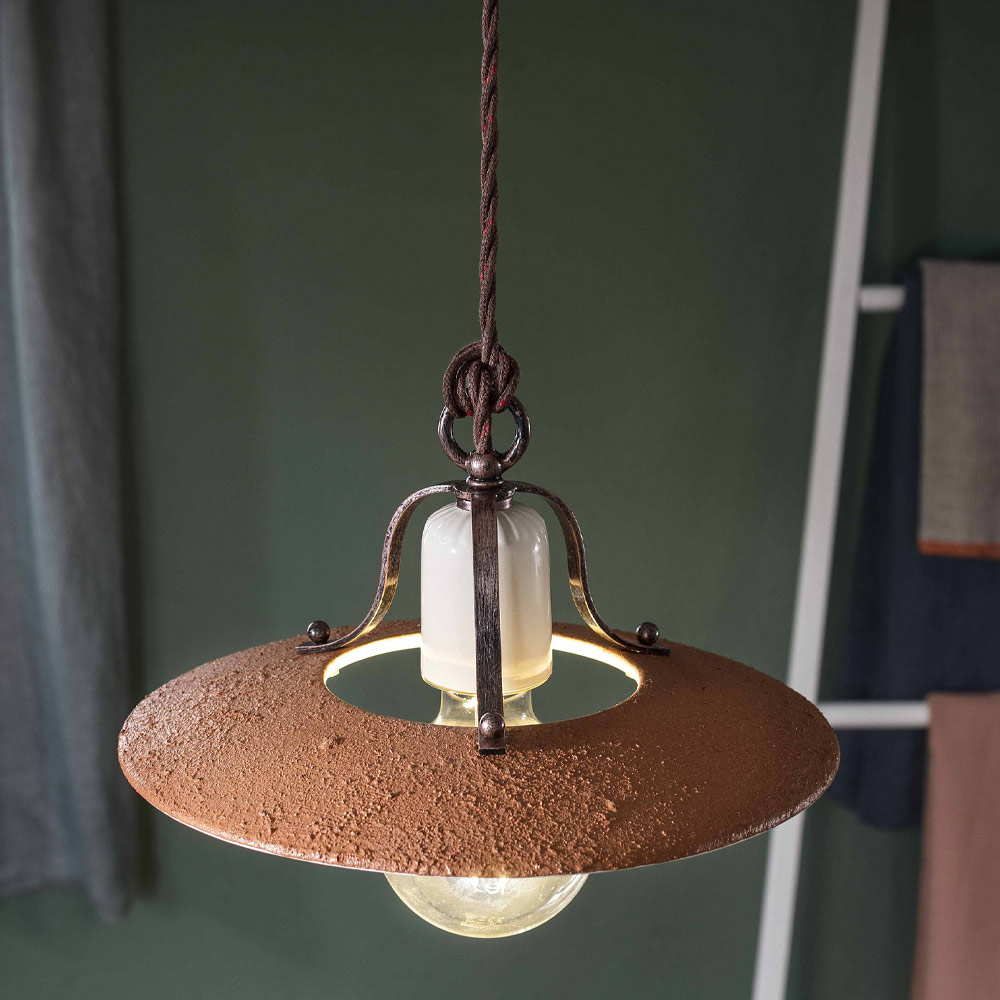 Suspended lamp in iron and handmade rough ceramic, 3 sizes made in Italy by Ferroluce.