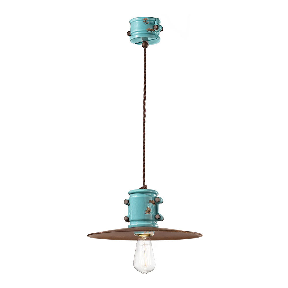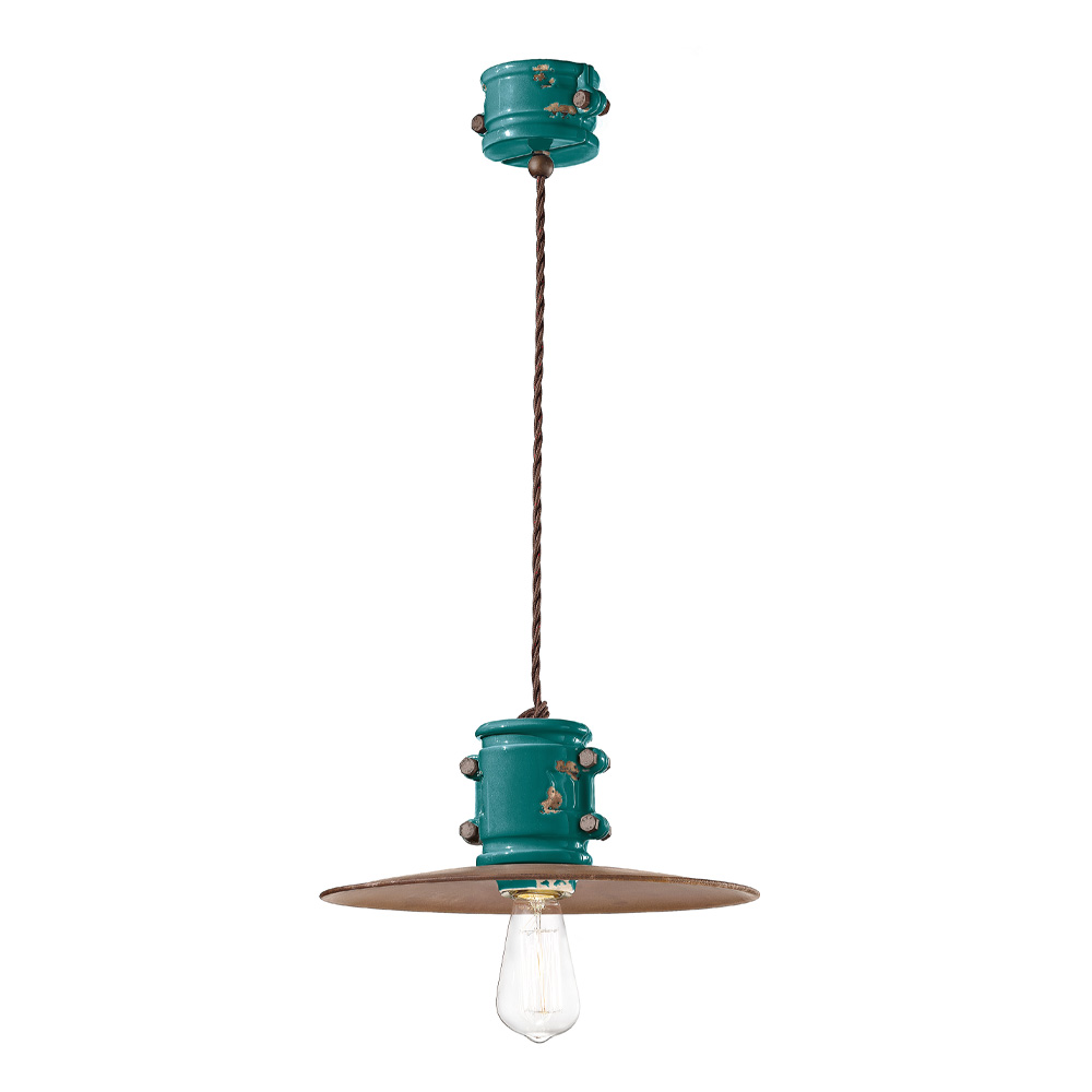 Handcrafted suspended lamp in ceramic and metal of industrial design made in Italy by Ferroluce.