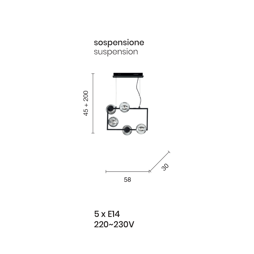 Bulb characteristic : 5x E14 220-230V