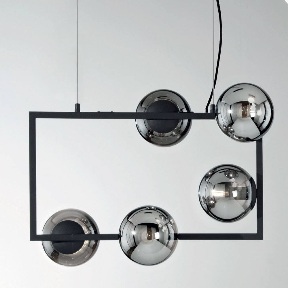 blown glass diffusers complete with height-adjustable cables. From the perfect combination of the modern touch of metal and the timeless elegance of blown glass comes an