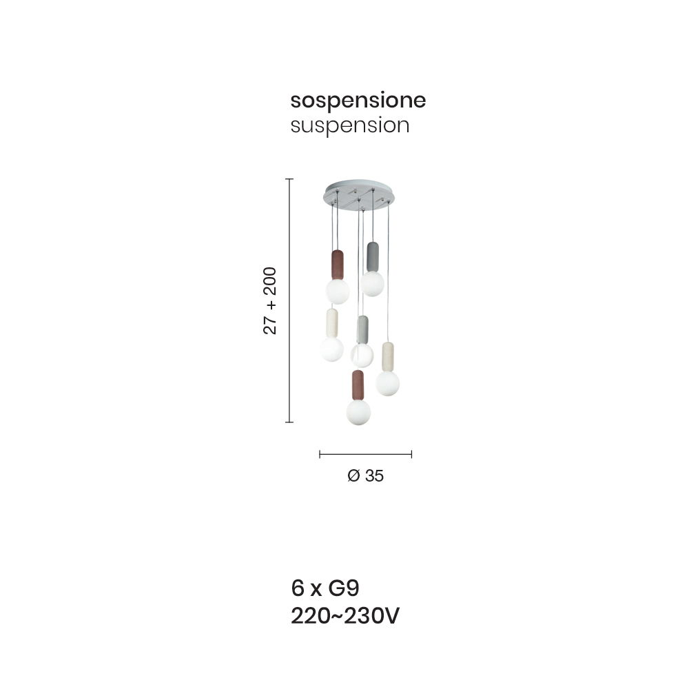 - 6 lights - diameter 35 x H 227 cm (6x G9 220-230V);