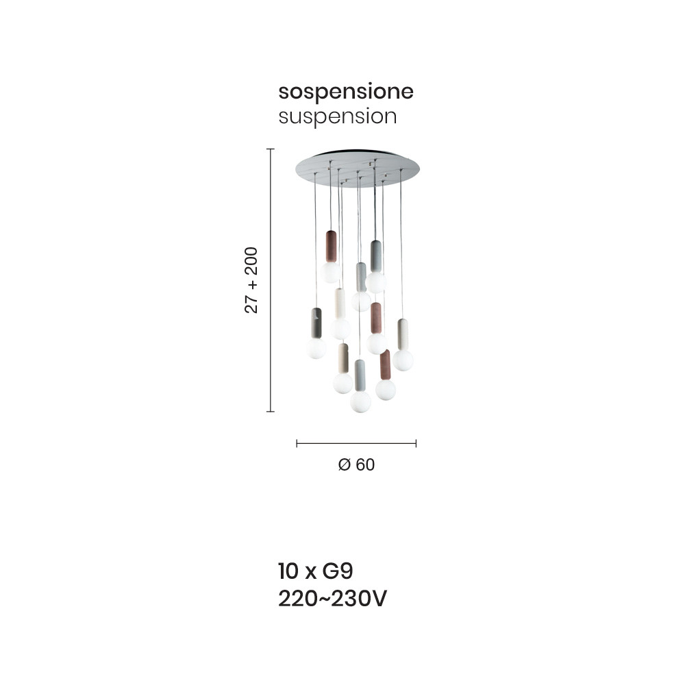 - 10 lights - diameter 60 x H 27 cm (10x G9 220-230V).