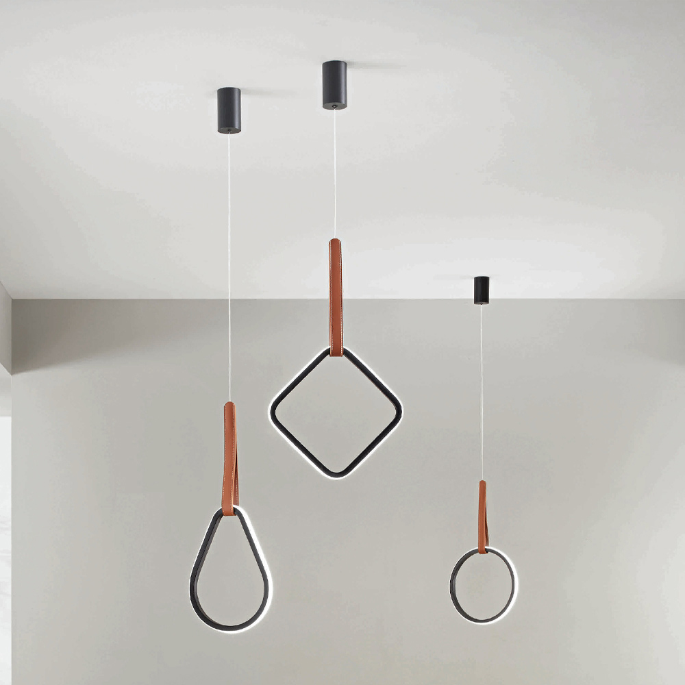 Suspension Lamp with Geometric Shapes and Detail in Faux Leather - Cypress