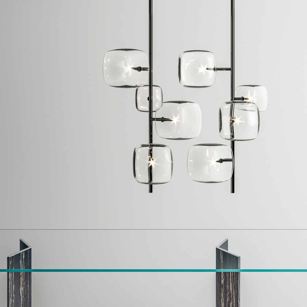 transparent blown pyrex glass depending on the size chosen. Also ideal for multiple installations at different heights, thus giving