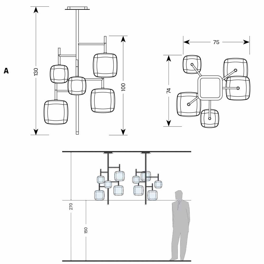 - L 75 x P 74 x H 130 cm (5 cubes);