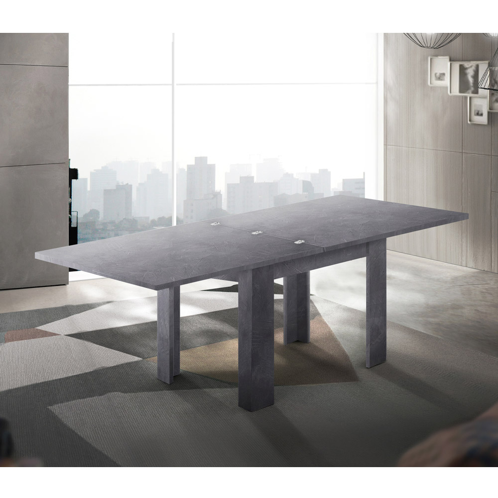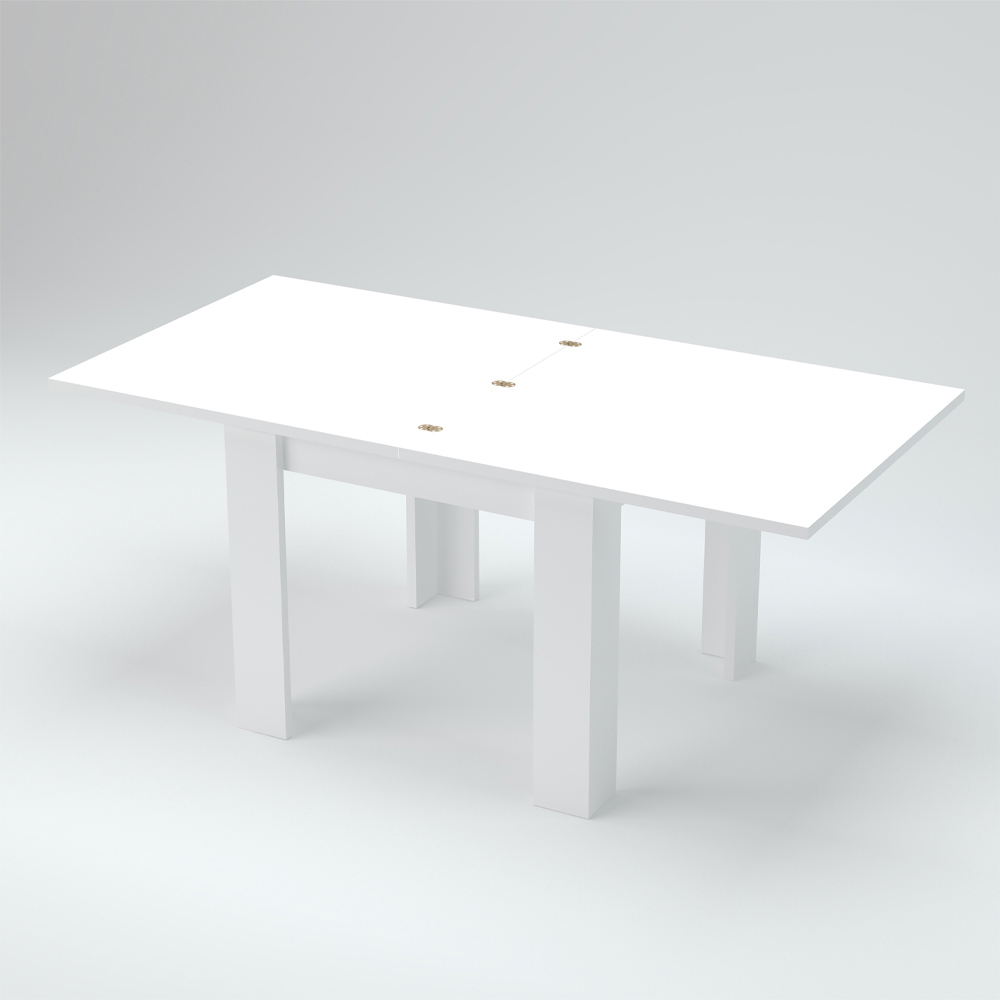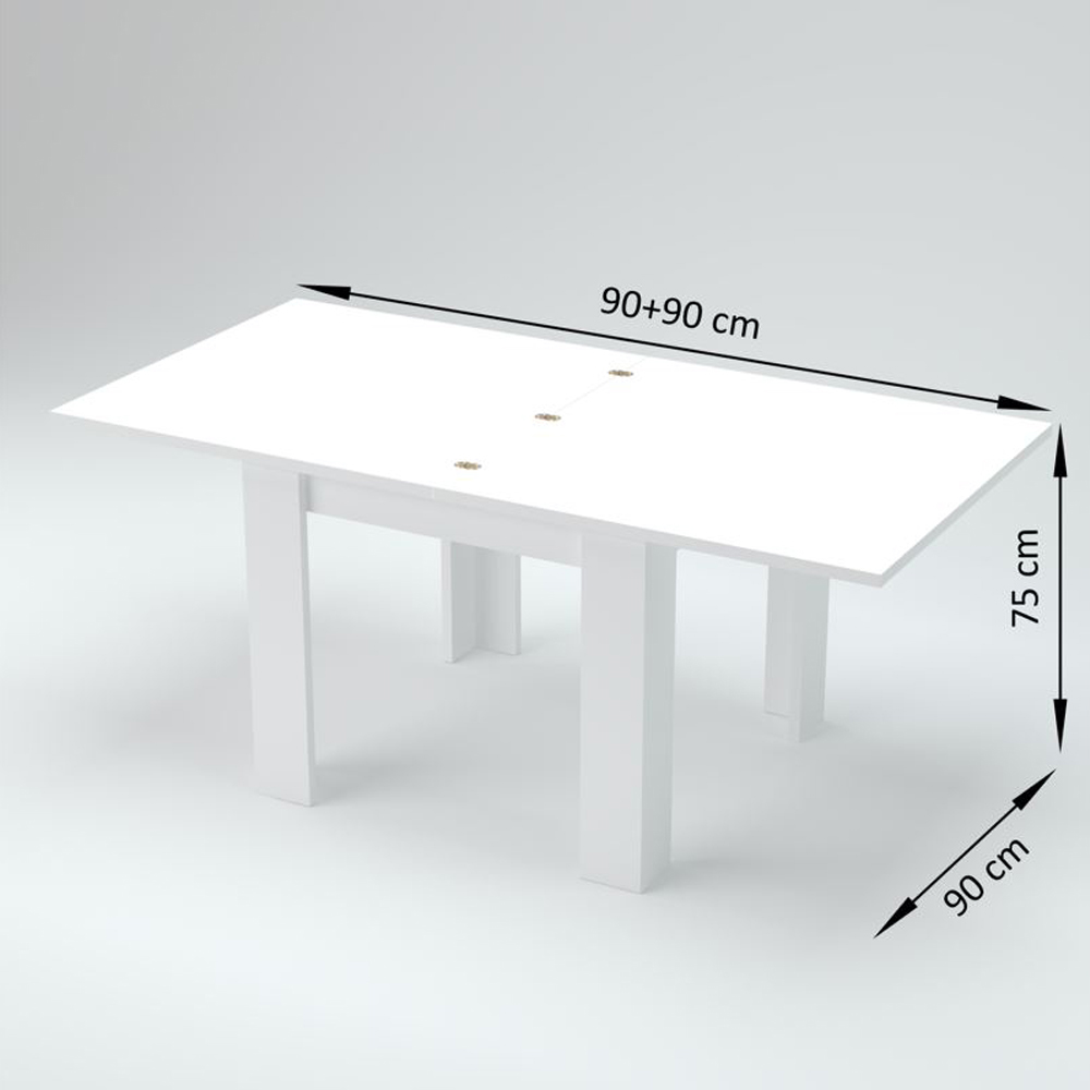 The extendable folding dining table has a square design characterized by clean and minimal lines.