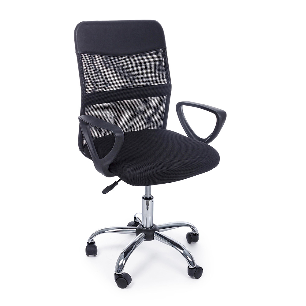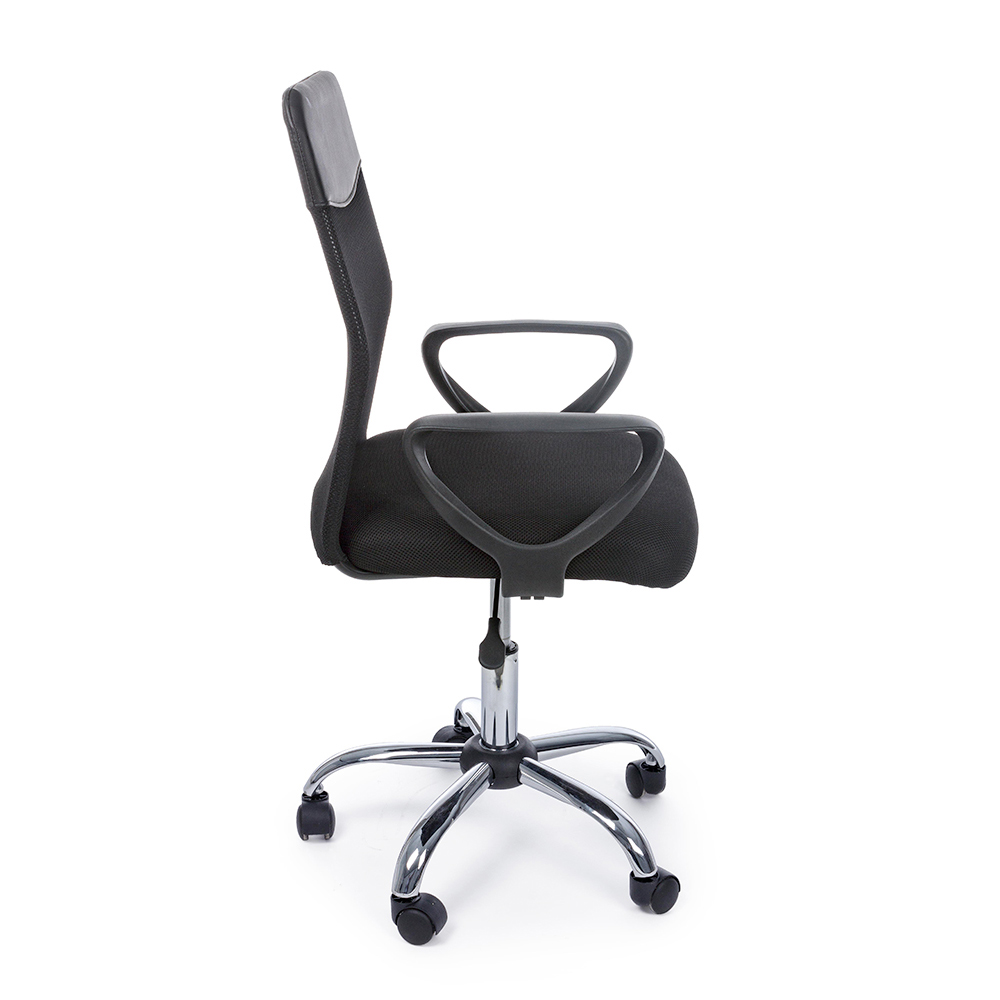 This office chair is made with a solid 53cm diameter chromed steel base and nylon wheels.