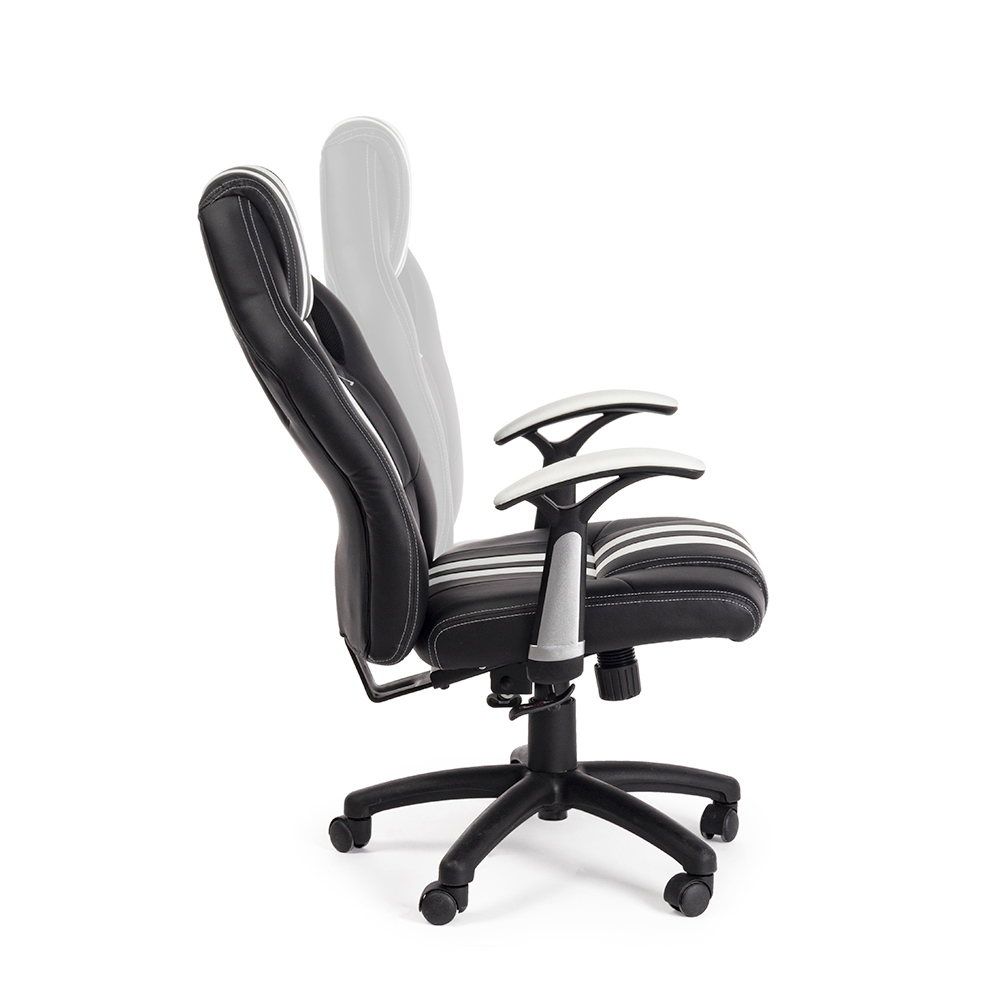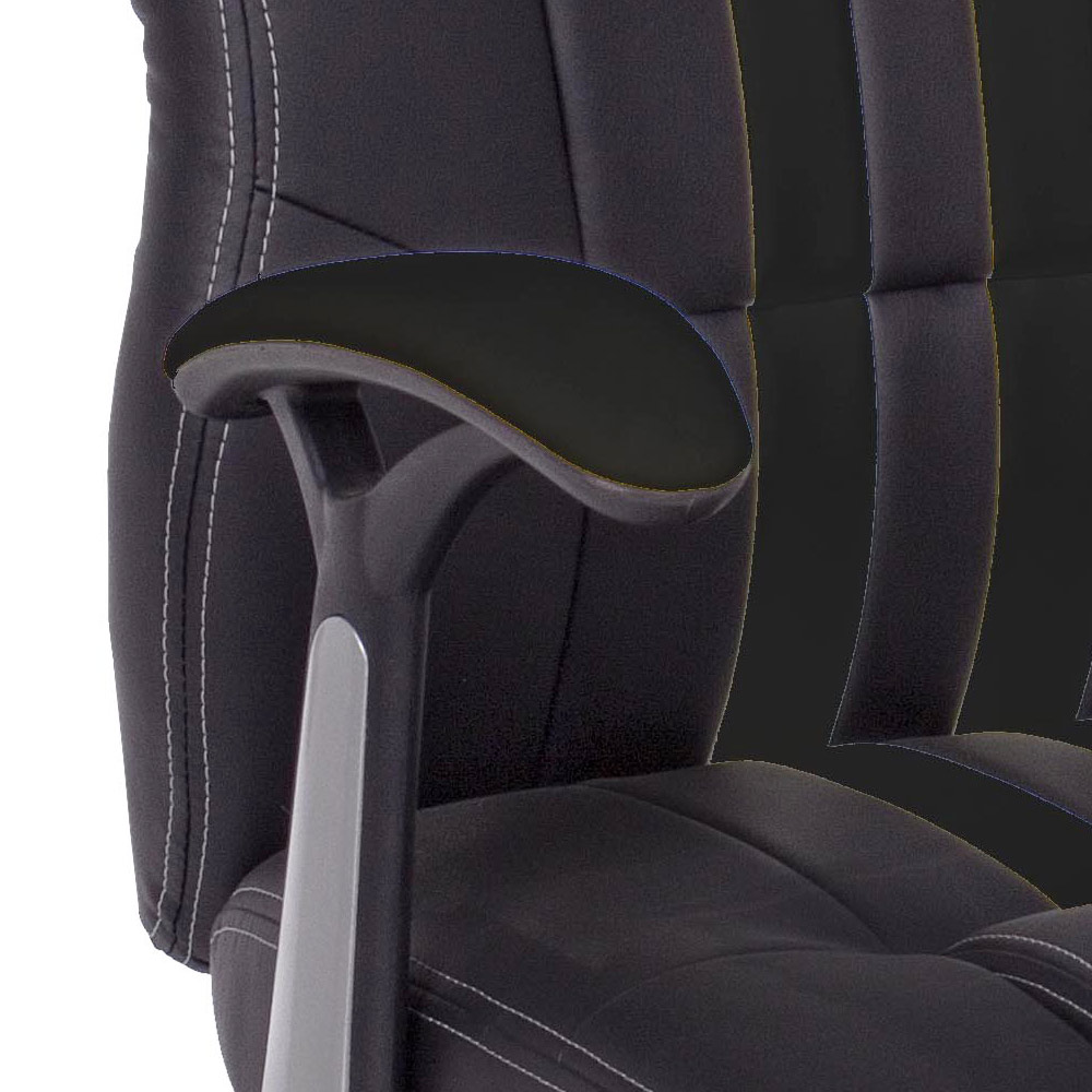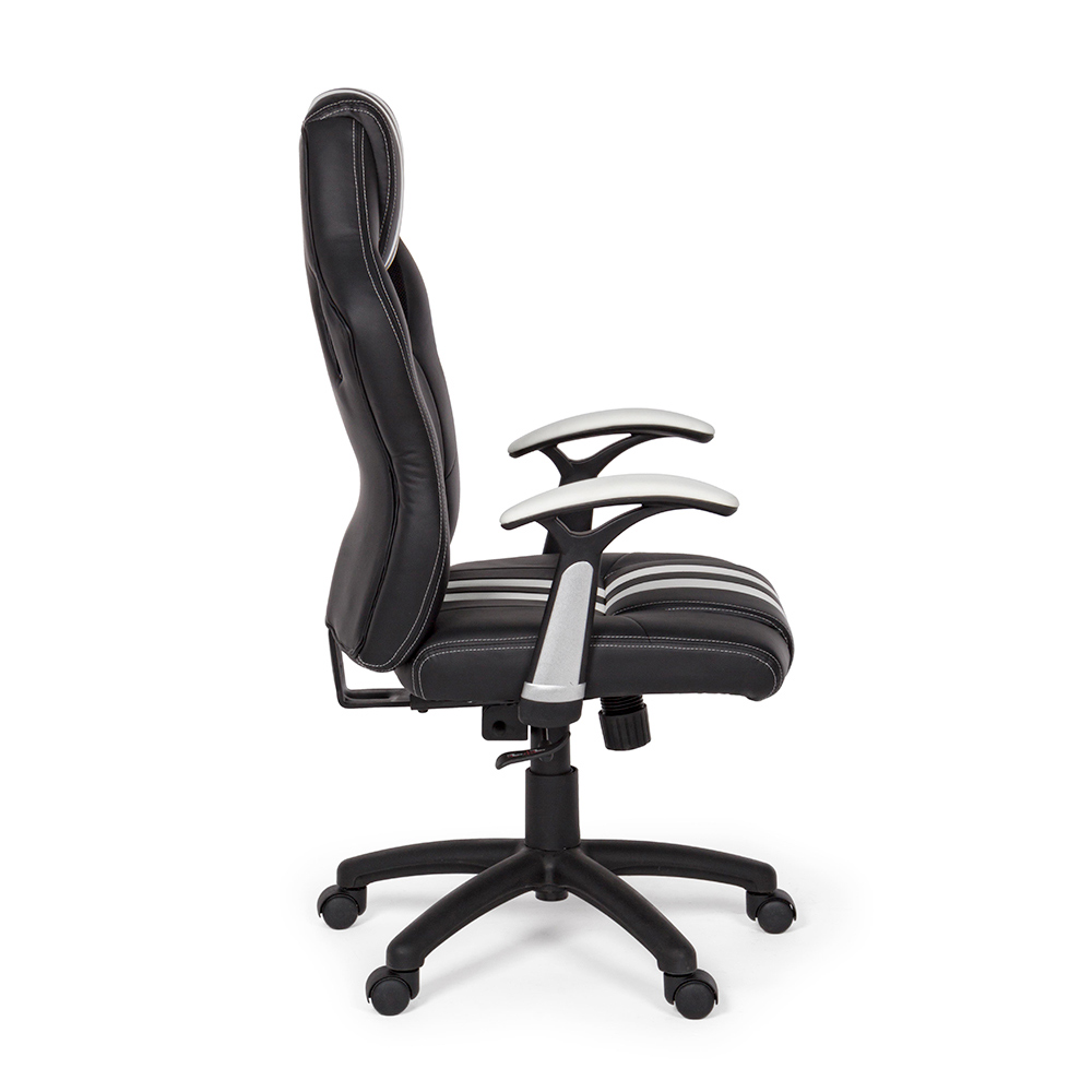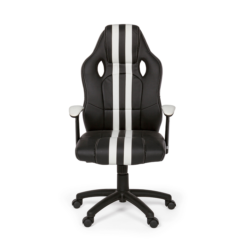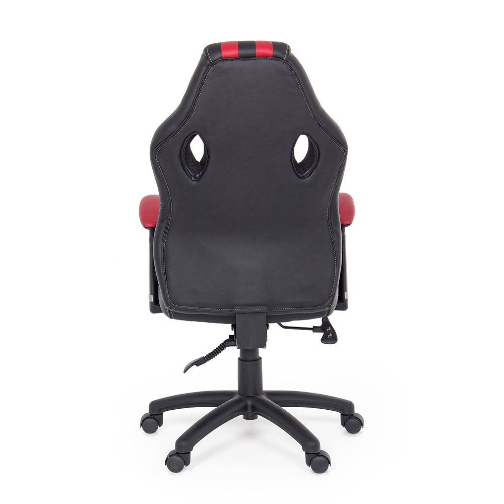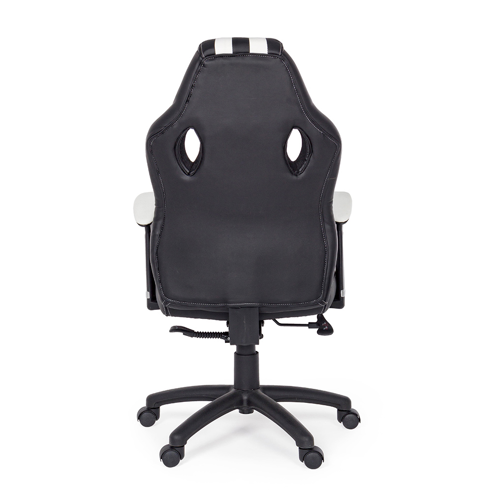 The armrests in powder-coated steel with leatherette upholstery and the backrest with lumbar support complete the design.