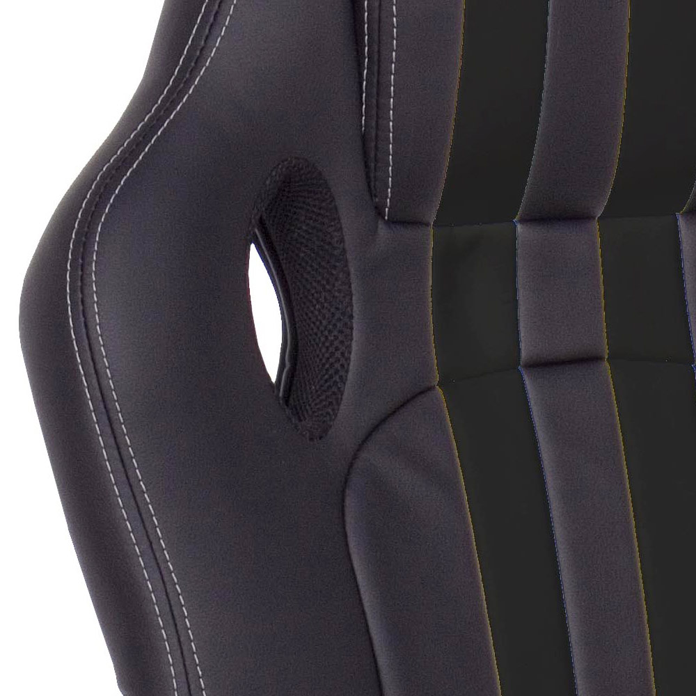 Swivel and reclining office armchair in nylon and black eco-leather with colored details.