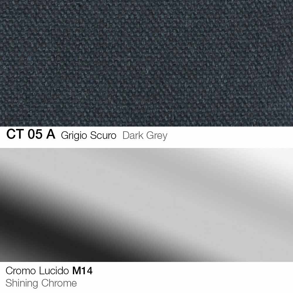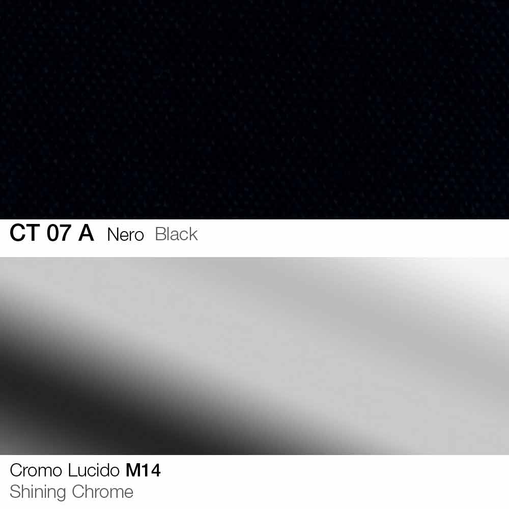 chromed steel equipped with gas lift and shell with armrests in cold-molded polyurethane, non-deformable, covered in fabric. An idea of