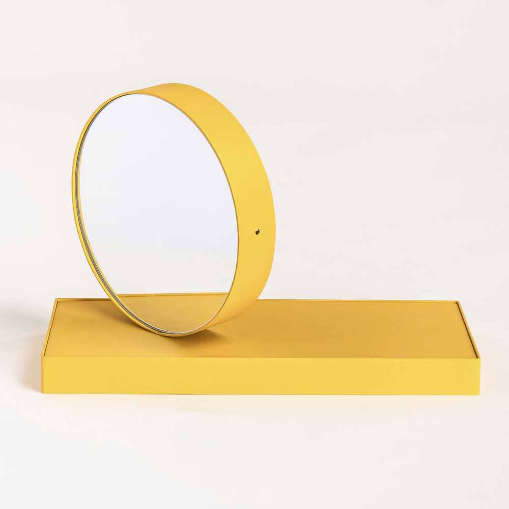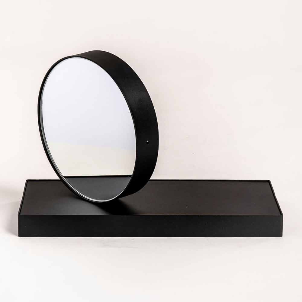 RAL painted steel on which the round and rotating structure of the clock is positioned which also has a practical mirror on the back. Thanks to its