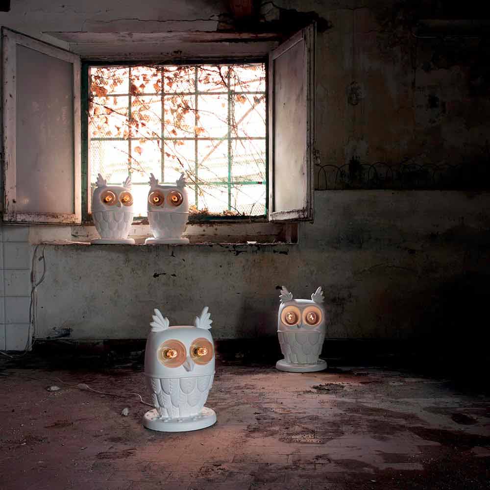 This original and singular table lamp has a modern and nice design in the shape of an owl where the eyes occupied by the light sources give a light and sophisticated spirit.