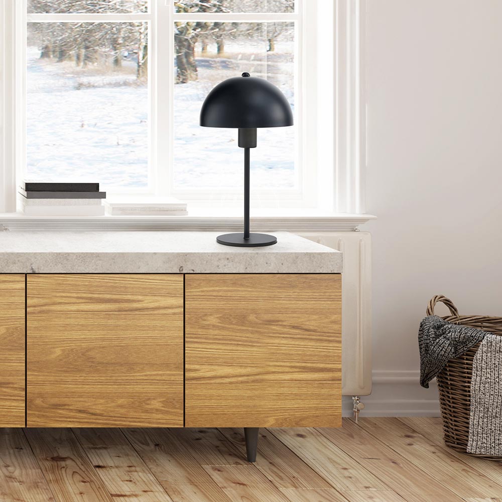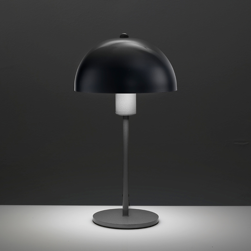This table lamp is an example of minimalist design that combines elegance and functionality . Its simple yet sophisticated shape with a dome and slim, cylindrical base fits perfectly into any modern setting, from a home study to an elegant living room.