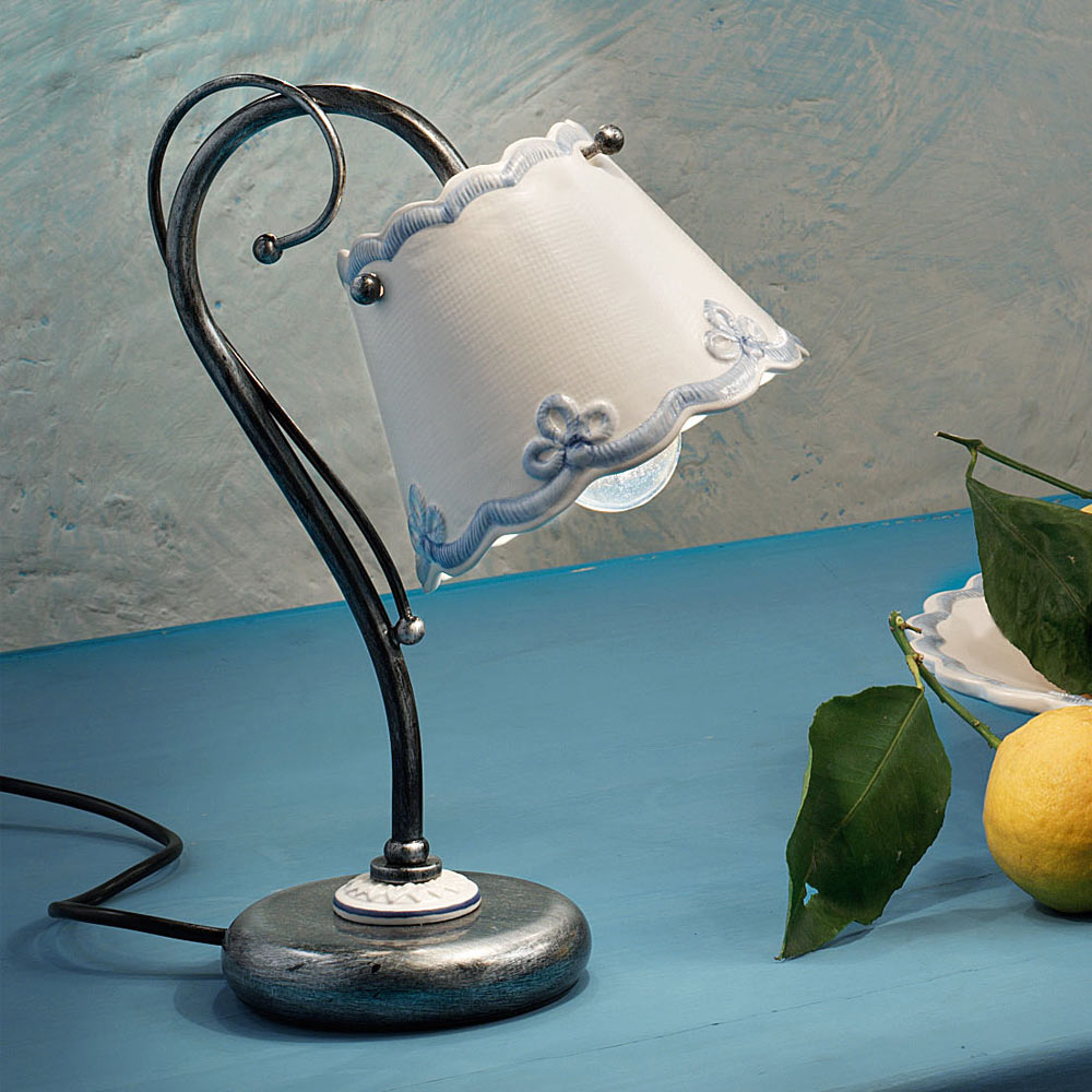 Handcrafted support lamp in metal and ceramic with embroidery effect made in Italy by Ferroluce.