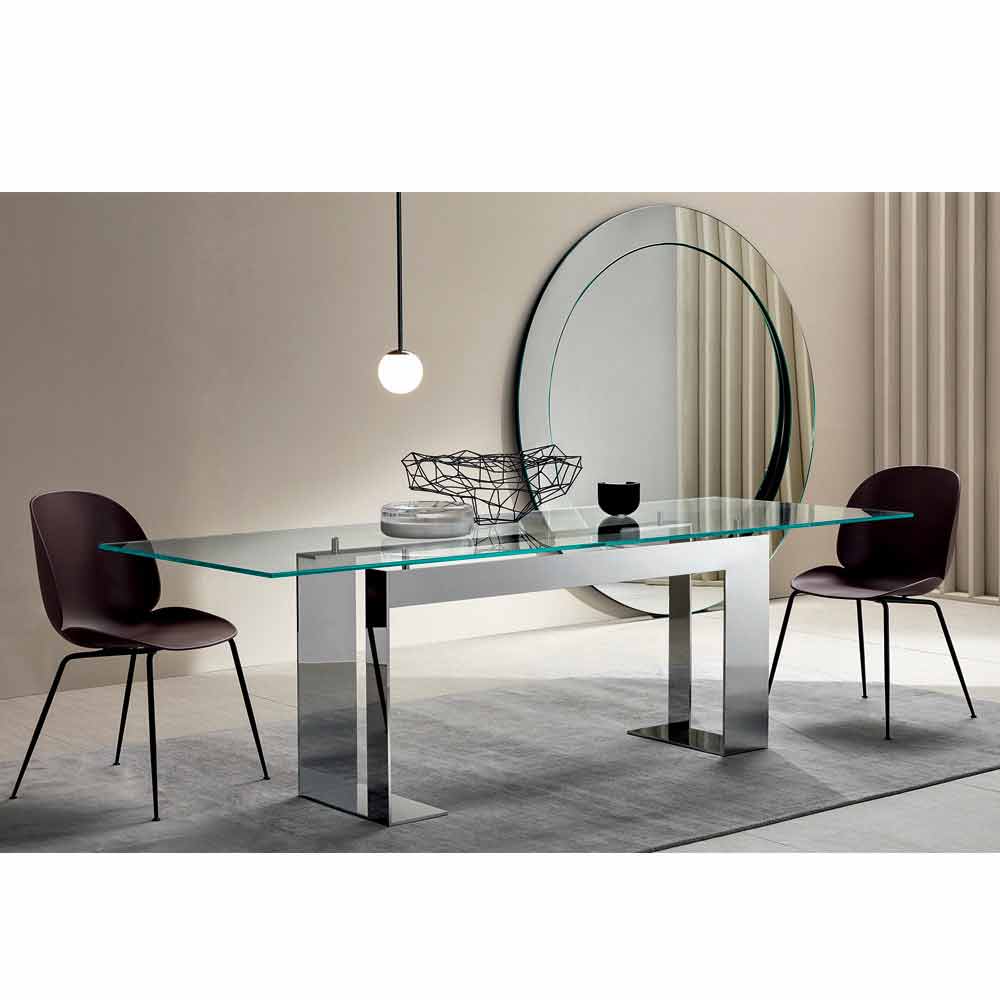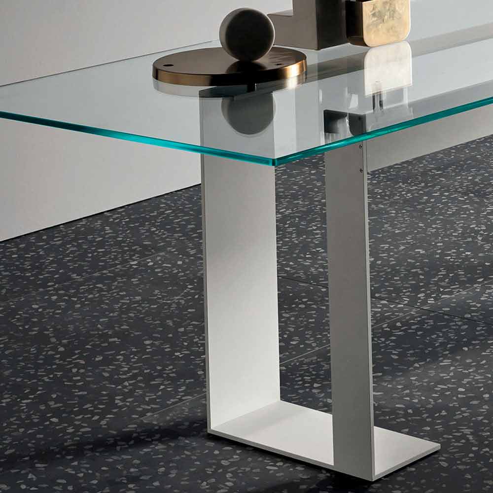 Dining table in extra-clear glass and metal legs, 4 dimensions made in Italy.