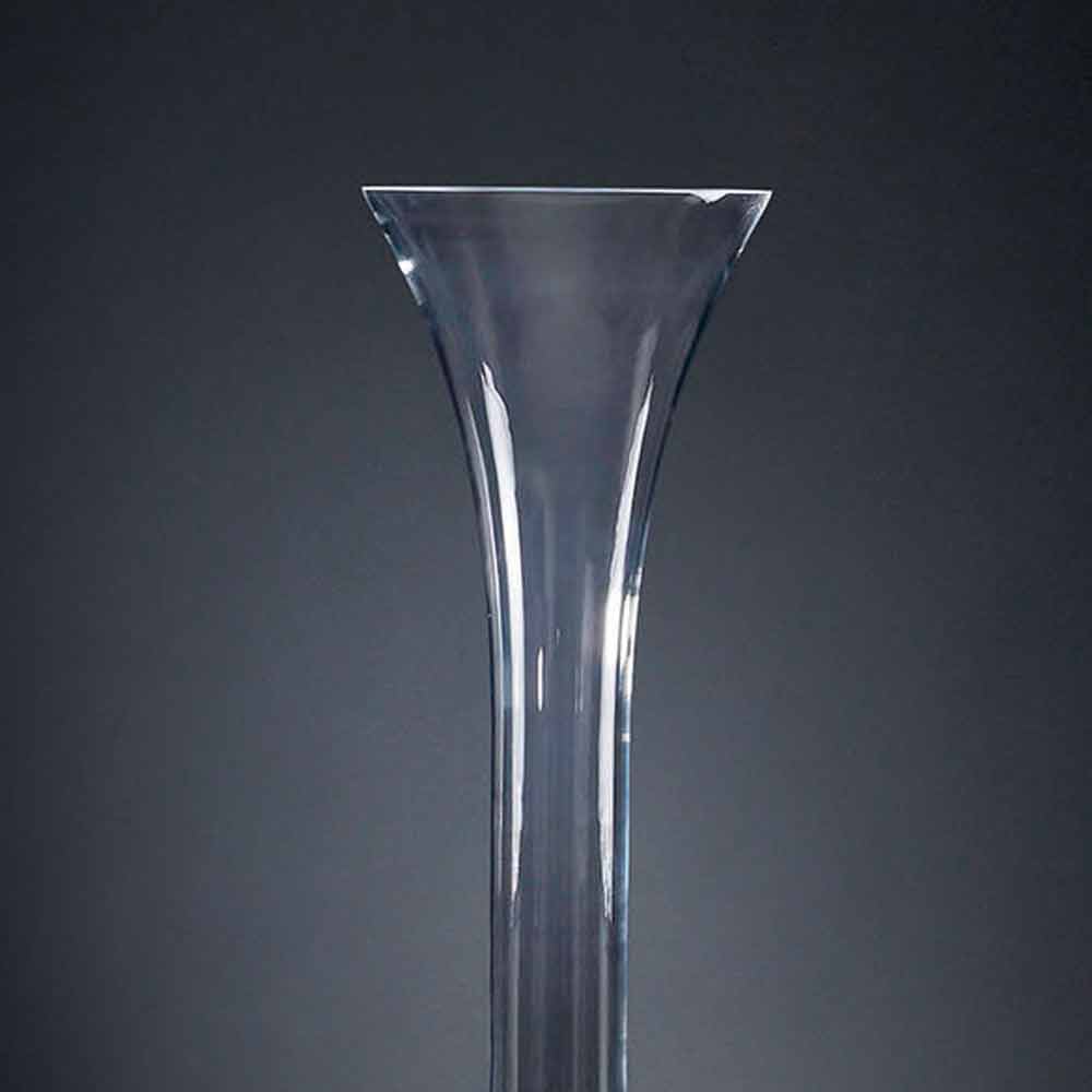 Tall indoor vase in transparent glass with white glass base through a process entirely made in Italy . A refined complement whose structure develops in height proposing a slender figure with soft shapes perfect for furnishing and completing environments with a sophisticated and classy aesthetic thanks also to the timeless elegance of glass, a quality and high value material . An ideal design for the most varied environments, from home furnishings to that of hotels, restaurants, contract areas, spas but also as a setting for events and weddings.