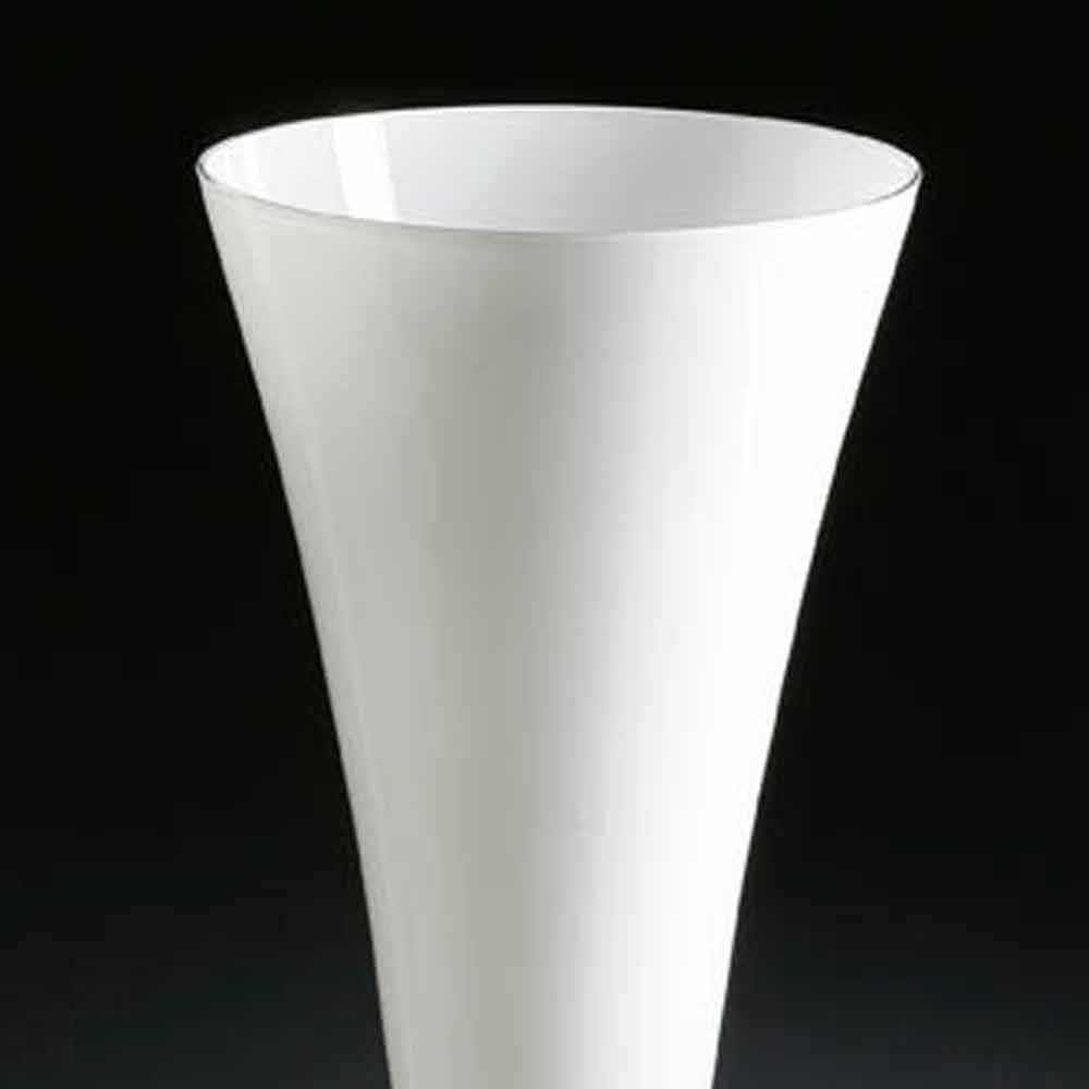 Indoor vase made in Italy in white glass with transparent base through a 100% Made in Italy processing . The timeless elegance of glass gives this complement its classic and sophisticated aesthetic which represents its real strength by offering quality and value . An ideal design for the most varied environments, from home furnishings to that of hotels, restaurants, contract areas, spas but also as a setting for events and weddings.