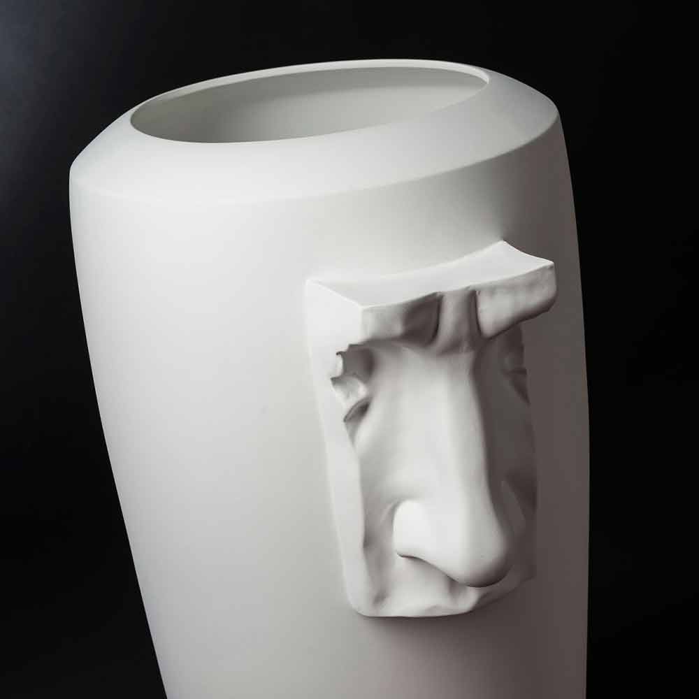 Original indoor decorative vase in opaque white ceramic handmade through a 100% Made in Italy production . A totally revolutionary furnishing idea that combines essential designs with elements extrapolated from works of art of Italian culture to create an exclusive decorative element capable of revolutionizing the style of any modern environment, bringing with it a touch of originality and an extremely creative aesthetic. . The craftsmanship underlines its value and is marked by precision, passion and love for tradition. The result is an idea of exclusive furniture ideal for the most varied environments, from home furnishings to that of hotels, restaurants, contract areas, spas but also as a setting for events and weddings.