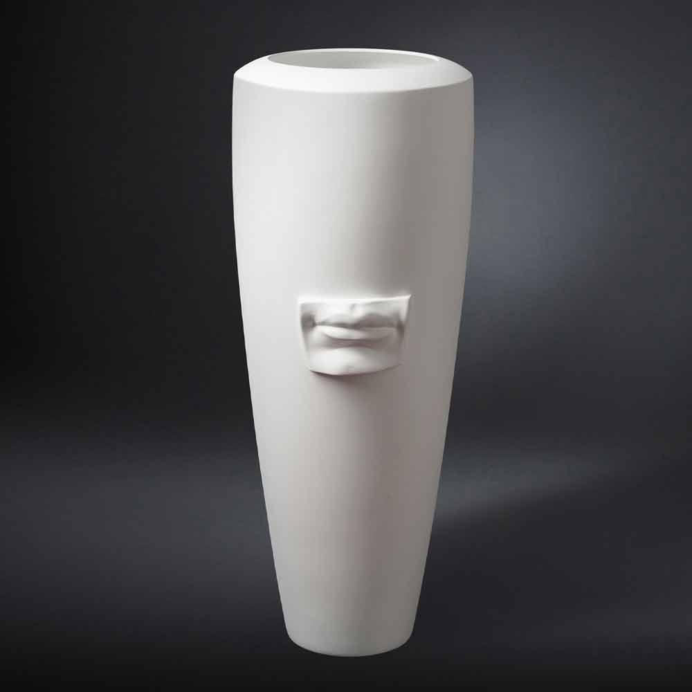 Creative indoor ornamental vase in opaque white ceramic handmade through a production totally made in Italy . A creative complement that comes from the union of a simple and minimal design ad   elements extrapolated from works of art of Italian culture to give life to a totally revolutionary furnishing idea designed for those who love to enrich their spaces in an original and exclusive way . The craftsmanship underlines its value and is marked by precision, passion and love for tradition. The result is an idea of exclusive furniture ideal for the most varied environments, from home furnishings to that of hotels, restaurants, contract areas, spas but also as a setting for events and weddings.